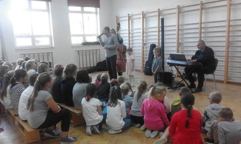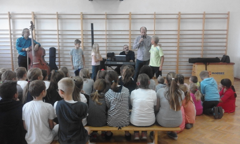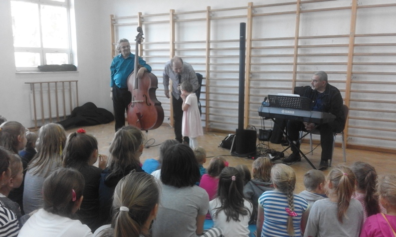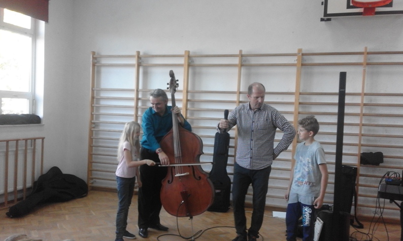 29.09 2016r odbyło się pierwsze spotkanie z muzyką, które poprowadził pan Maciej Goździela. Ciekawe opowieści o kontrabasie, jego wyglądzie i brzmieniu bardzo się wszystkim podobały. To była wspaniała lekcja muzyki „na żywo”. Już czekamy z niecierpliwością na następną….