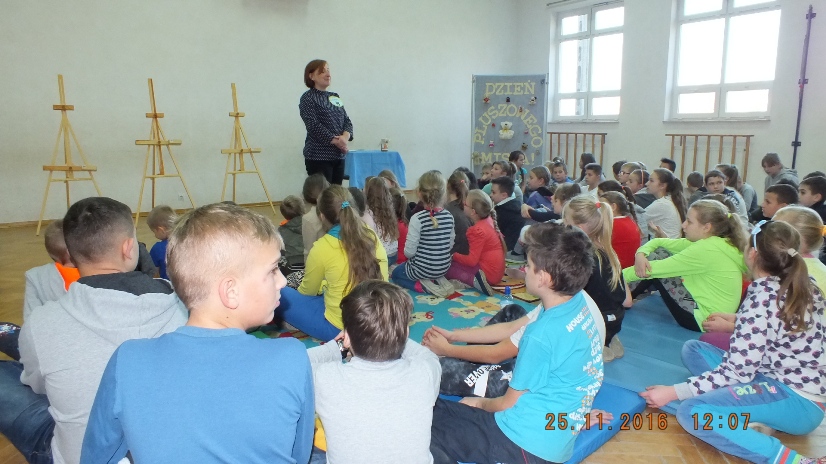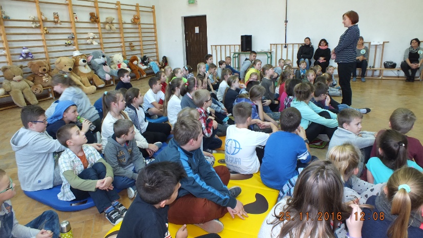 W ramach akcji głośnego comiesięcznego czytania dzieciom uczniowie wysłuchali jednego rozdziału książki A.A Milne ,,Kubuś Puchatek’’. Podsumowano konkurs czytelniczy dla kl. I-III ,,Projekt okładki do książki ,,Kubuś Puchatek’’. Komisja konkursowa przyznała trzy pierwsze miejsca następującym osobom: Miłosz Kamiński kl. I, Aleksander Szkatulnik kl. II, Kacper Wiktorowicz kl. III. Pozostali uczestnicy otrzymali nagrody pocieszenia w postaci zakładki do książki.