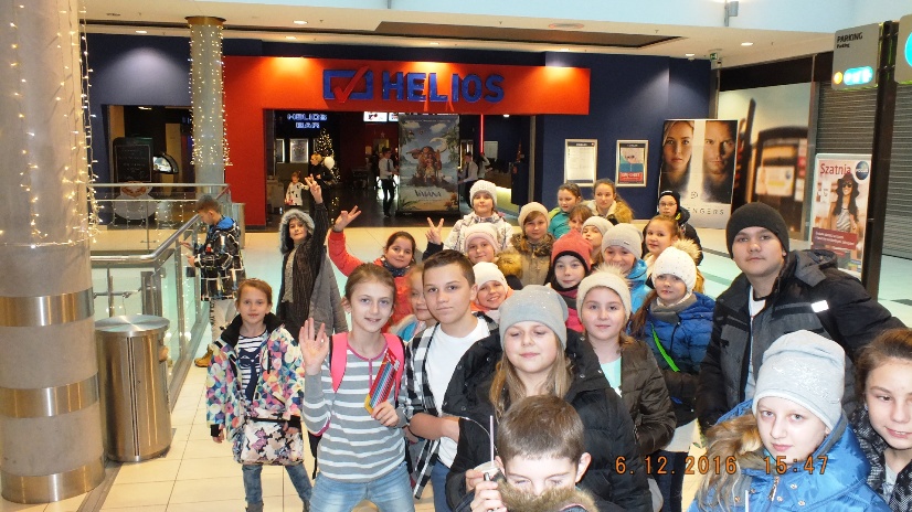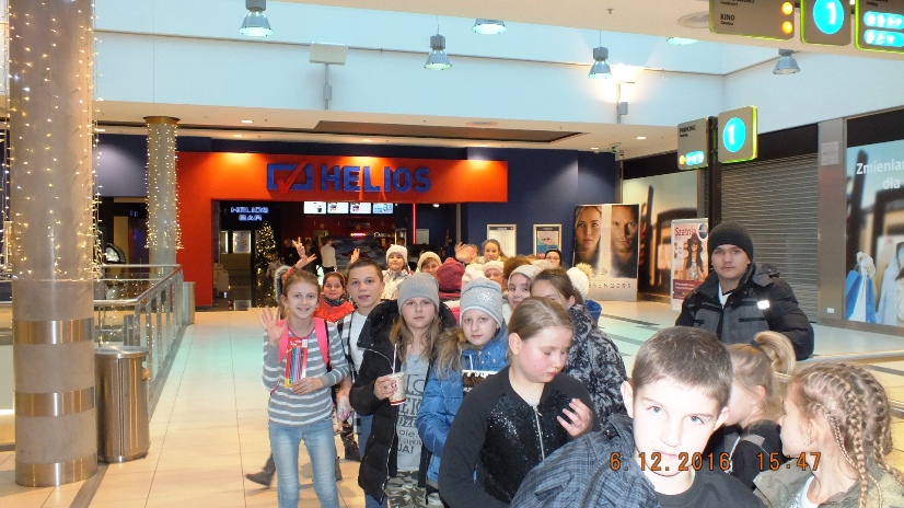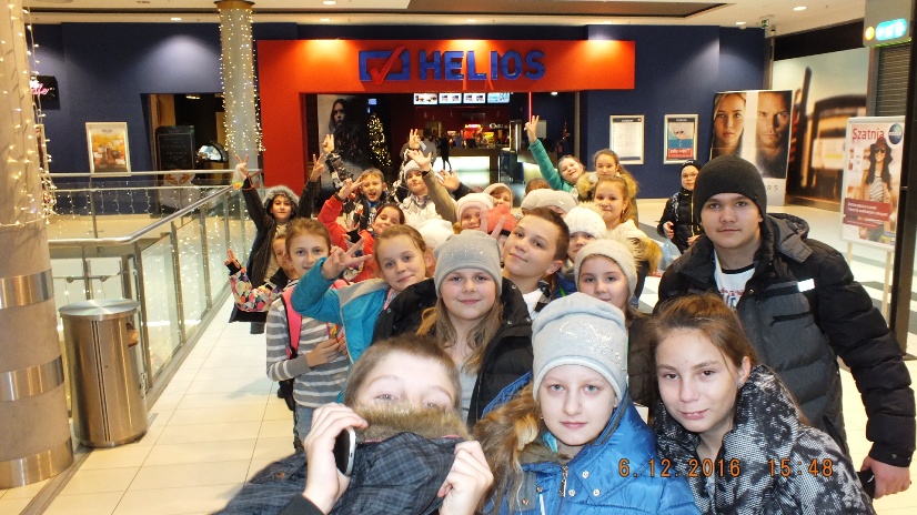 Uczniowie klas IV – VI wraz ze swoimi wychowawcami: p. Małgorzatą Biegałą, p. Przemysławem Borowskim oraz p. Katarzyną Ślązak udali się do Piotrkowa Trybunalskiego na mikołajkowy seans filmowy w kinie Helios. Dzieci obejrzały tam film pt. "Fantastyczne zwierzęta i jak je znaleźć" oparty na powieści i oryginalnym scenariuszu Joanne Rowling. Dzięki niemu wszyscy mogli się przenieść do magicznego świata czarodziejów, tym razem wkomponowanego w klimat przedwojennego Nowego Jorku. Po seansie uczniowie udali się do strefy Św. Mikołaja, gdzie jego pomocnicy prezentowali dzieciom różne ciekawe eksperymenty i doświadczenia. Po pełnym pozytywnych emocji dniu, wszyscy wrócili do swoich domu zadowoleni i ciekawi jaki film w mikołajki zobaczą już za rok.