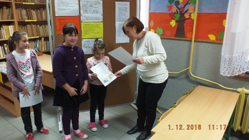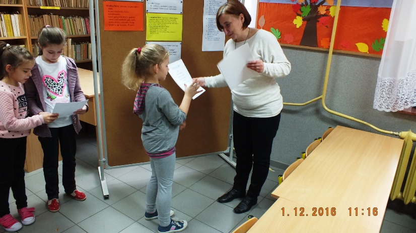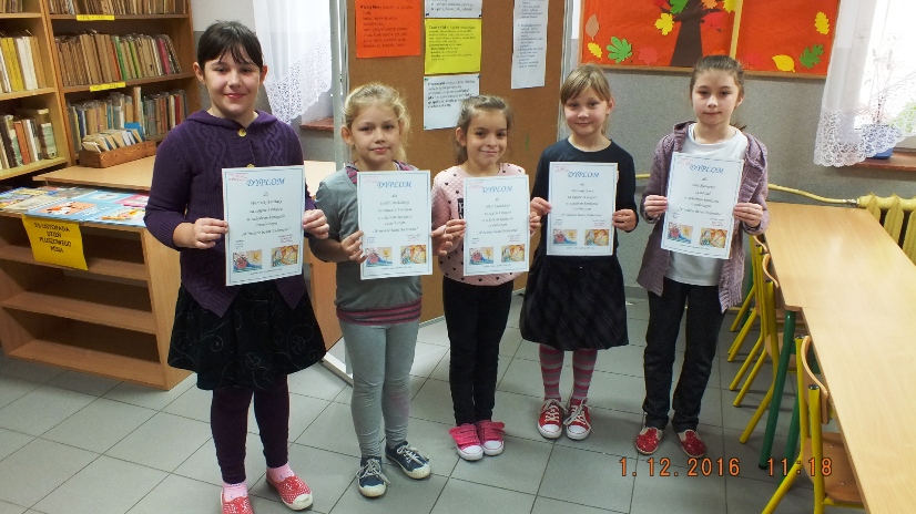 W dniu 1 grudnia 2016 r. odbył się etap szkolny konkursu czytelniczego kl. 1-3 ,,W świecie baśni H. Ch. Andersena”. Celem konkursu było zapoznanie uczniów z biografią autora oraz jego twórczością, budzenie zainteresowania czytelnictwem oraz sprawdzenie stopnia znajomości wybranych baśni.