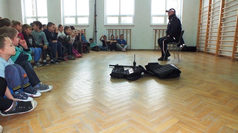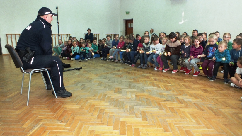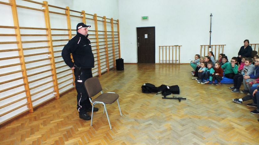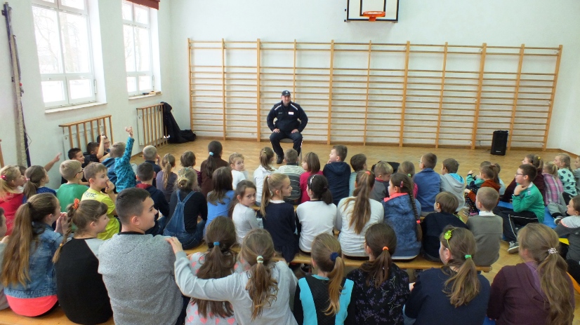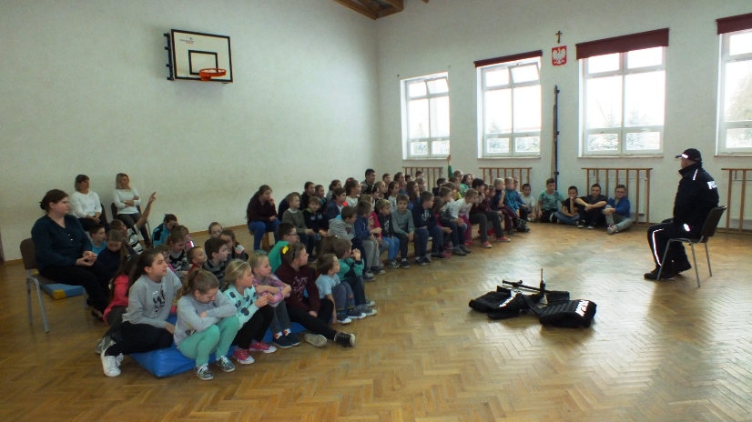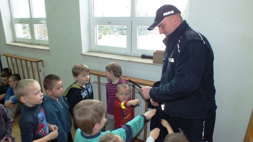 W dniu 13 stycznia 2017 roku naszą szkołę odwiedził mł. aspirant Marcin Stasiak z Komisariatu Policji w Paradyżu. Pan dzielnicowy poprowadził spotkanie edukacyjne na temat zasad bezpieczeństwa podczas wypoczynku zimowego. Ważnym punktem tej niecodziennej lekcji profilaktycznej było przypomnienie uczniom o widoczności na drodze i o odblaskach, które mogą nas uchronić przed niebezpieczeństwem. Zaproszony gość podarował wszystkim dzieciom opaski odblaskowe.