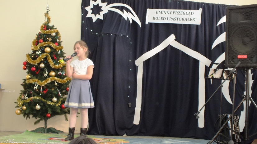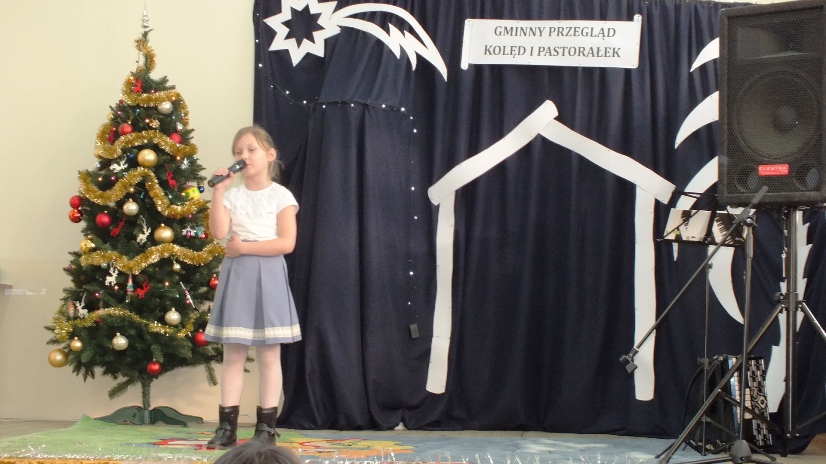 - w kategorii klas II - III ucz. Weronika Sowa zaśpiewała ,,Kolędę domową” a duet Alicja Kamińska i Łukasz Madej pastorałkę ,,Bosy Pastuszek”;