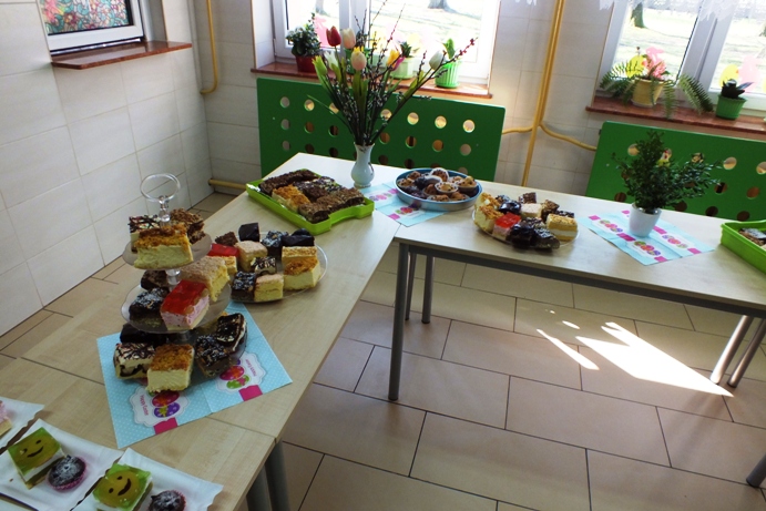 W dniu 10 kwietnia w naszej szkole zapachniało Świętami Wielkanocnymi. Wszystko za sprawą domowych wypieków, których aromat wypełnił pomieszczenie świetlicy. Serniki, babeczki oraz inne słodkości zwabiły uczniów chętnych do ich zakupu. Kolejka zdawała się nie mieć końca….