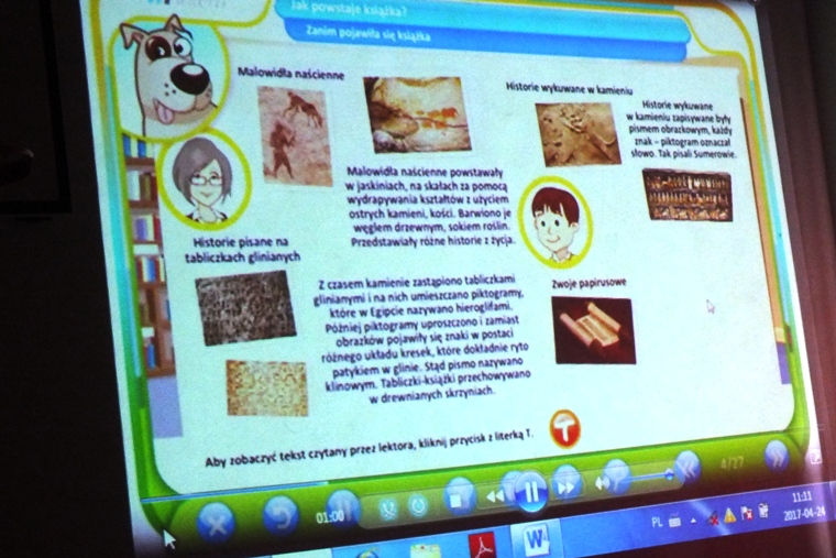 Z tej okazji na szkolnym korytarzu rozwieszono cytaty i sentencje o książce. Uczniowie obejrzeli prezentację multimedialną „Dzieje książki”, a w ramach akcji głośnego czytania chętne dzieci czytały fragmenty książki „Niewiarygodne przygody Marka Piegusa”.