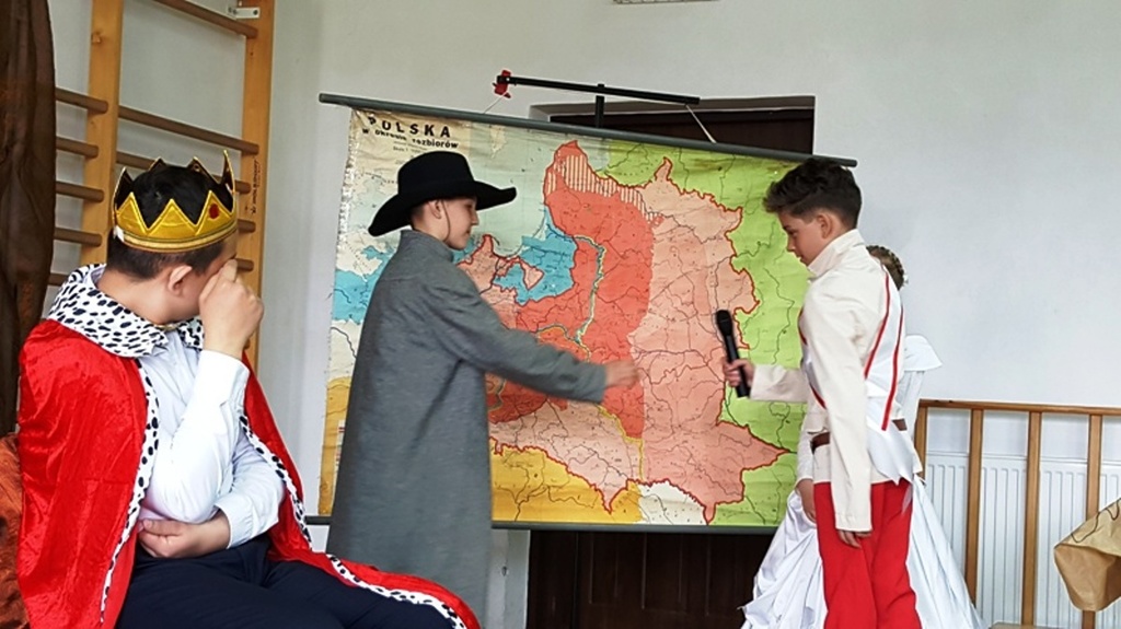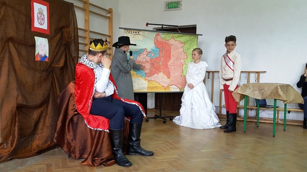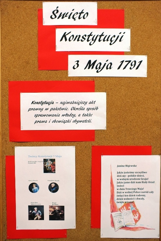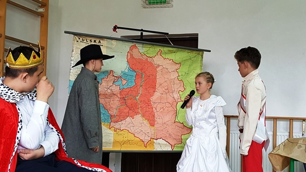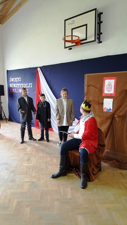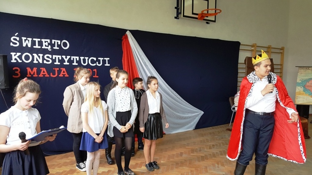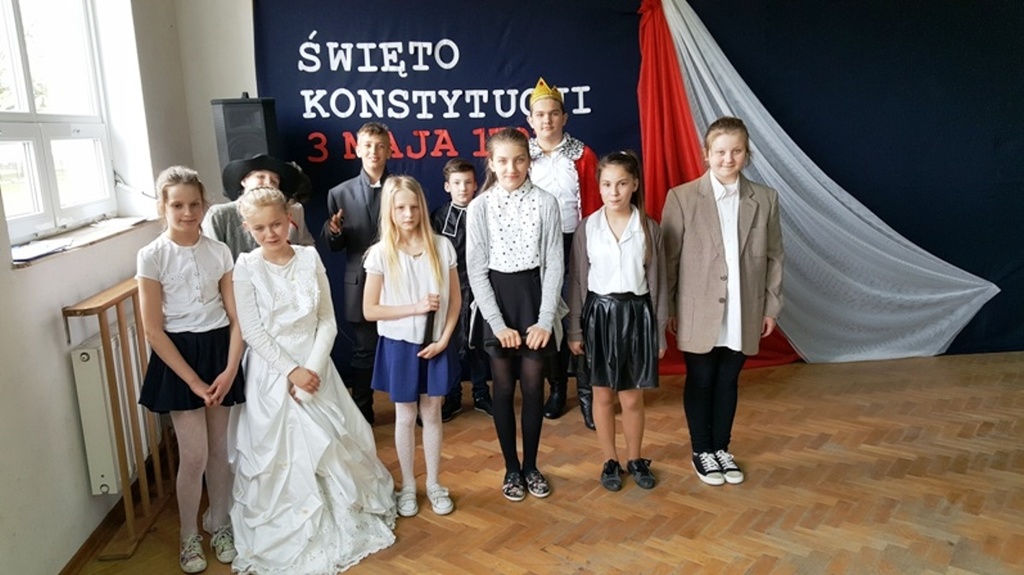 04.05. 2017 r. w Szkole Podstawowej w Sokołowie odbyła się uroczysta akademia z okazji 226 rocznicy uchwalenia Konstytucji 3 Maja. Klasa VI, pod opieką pani Małgorzaty Biegały oraz pani Katarzyny Ślązak, zaprezentowała okolicznościowe przedstawienie. Miało ono na celu pokazanie jak ważną rolę miało podpisanie tego dokumentu. Powszechnie przyjmuje się, że Konstytucja 3 maja była pierwszą w Europie i drugą na świecie nowoczesną, spisaną konstytucją. Młodzi aktorzy wcielili się w role zaborców, dzięki czemu ich młodsi koledzy mieli szansę na chwilę przenieść się w czasy Rzeczypospolitej Obojga Narodów.