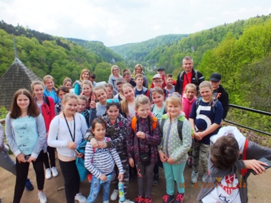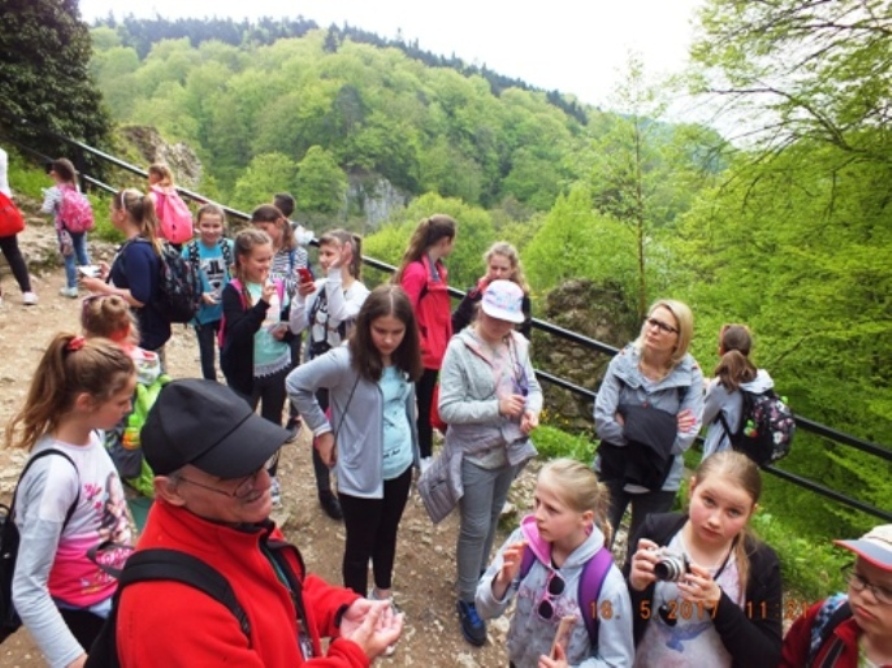 Edukacja przyrodnicza to bardzo ważne ogniwo edukacji szkolnej. Wiedza z jej zakresu bardziej trafia do ucznia, jeśli ma on możliwość zetknąć się na żywo z otaczającą go przyrodą. Obserwacja roślin i zwierząt, poznawanie różnych procesów kształtujących powierzchnię ziemi oraz podziwianie przepięknych polskich krajobrazów, to tylko niektóre walory obcowania z przyrodą. Taką szansę właśnie mieli uczniowie IV, V i VI klasy z naszej szkoły, którzy w połowie maja uczestniczyli w szkolnej wycieczce krajoznawczo-turystycznej do Ojcowskiego Parku Narodowego. Przez dwa dni wraz z opiekunami p. Małgorzatą Biegałą, p. Edytą Jackowską, p. Katarzyną Ślązak oraz z p. Przemysławem Borowskim, podążali szlakami najmniejszego parku narodowego w Polsce, zachwycając się jego niezwykłymi walorami krajobrazowymi. Wycieczkowicze podziwiali wapienne skałki i skalne zbocza doliny, którą przepływa urokliwa rzeka Prądnik. Podążali szlakami, które prowadziły do najciekawszych miejsc w parku. Uczniowie zwiedzili słynną w rejonie Ojcowa Jaskinię Łokietka. I choć każdego przenikał chłód jaskiniowych korytarzy, to niezwykle ciekawe historie związane z tym miejscem, opowiadane przez pana przewodnika, pozwalały wszystkim zapomnieć o wszelkich niedogodnościach. Druga jaskinia, którą zwiedziły dzieci, również urzekła ich swoim urokiem. Jednak tu, największe wrażenie wywarły na uczniach śpiące przy suficie i czasami przelatujące nad ich głowami nietoperze. Uroku całej jaskiniowej wędrówce dodawały świece, z którymi w całkowitej ciemności dzieci wraz z nauczycielami podążali jaskiniowymi korytarzami. Aby uzupełnić wiedzę o malowniczej dolinie Prądnika, wzdłuż której rozpościera się Ojcowski Park Narodowy, uczniowie podziwiali jedną z najnowocześniejszych, multimedialnych wystaw przyrodniczych w Polsce. Podążając muzealną ścieżką, poprzez sale z ciekawymi ekspozycjami, makietami oraz przestrzennymi aranżacjami, uczniowie prowadzeni byli przez multimedialnego przewodnika, który niezwykle ciekawie opowiadał o każdym elemencie ekspozycji. Podczas wycieczki, nie zabrakło również odrobiny historii. Uczniowie zwiedzili ruiny Zamku w Ojcowie oraz jeden z niewielu ocalałych zamków na Jurze Krakowsko-Częstochowskiej, tj. Zamek na Pieskowej Skale. Tam, u jego podnóża, dzieci mogły podziwiać słynną Maczugę Herkulesa – osobliwy pomnik przyrody, będący wizytówką Ojcowskiego Parku Narodowego. Ważnym punktem programu, było również zwiedzanie Zamku w Ogrodzieńcu - jednego z największych i najbardziej rozpoznawalnych obiektów historycznych na szlaku Orlich Gniazd. Podczas dwudniowej wyprawy nie mogło zabraknąć również McDonalda, którego uczniowie wraz z nauczycielami „zwiedzili” tuż przed powrotem do domu. Wszyscy wycieczkowicze powrócili pełni wrażeń i pozytywnych emocji, już teraz przygotowując się na kolejną szkolną wyprawę, na której będą mogli poznawać nowe, atrakcyjne regiony naszego kraju.
