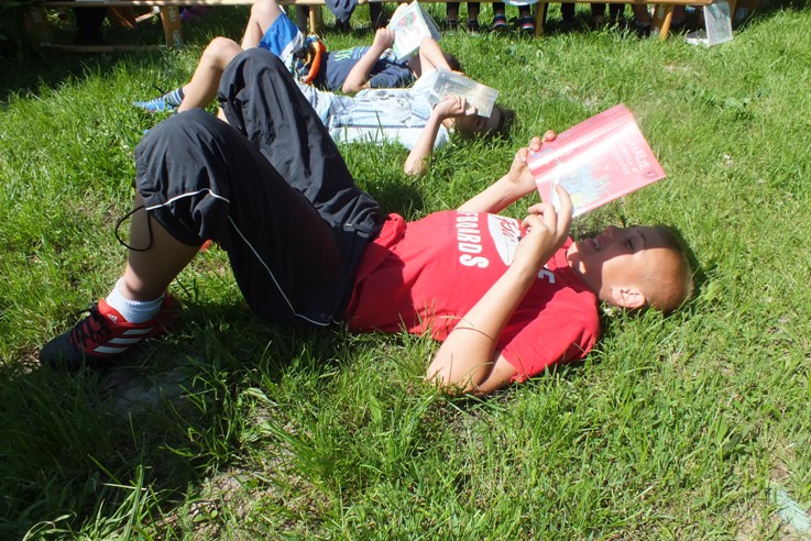 1 czerwca 2017r. o godz. 10:00 odbyła się akcja masowego czytania pod hasłem „Jak nie czytam, jak czytam”. Pomysłodawcą i głównym organizatorem jest redakcja miesięcznika „Biblioteka w Szkole”, natomiast organizatorami przedsięwzięć w poszczególnych miejscowościach – biblioteki szkolne i publiczne. Celem akcji jest przede wszystkim promocja czytelnictwa wśród dzieci i młodzieży. Z radością przyłączyliśmy się do tego wspaniałego przedsięwzięcia. Tego dnia o godzinie 10.00 wszyscy uczniowie i nauczyciele wypożyczyli książki z biblioteki szkolnej i udali się na boisko, gdzie każdy ze swoją lekturą, w dowolnie wybranym miejscu i ulubionej pozycji czytał, czytał, czytał… Czytano na stojąco, na leżąco, na siedząco, na huśtawkach, na ławkach, opierając się o ścianę, na zjeżdżalni, na schodach, w grupach, pojedynczo…