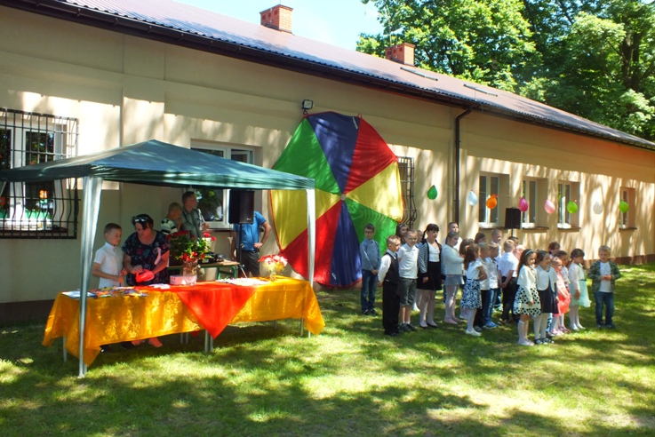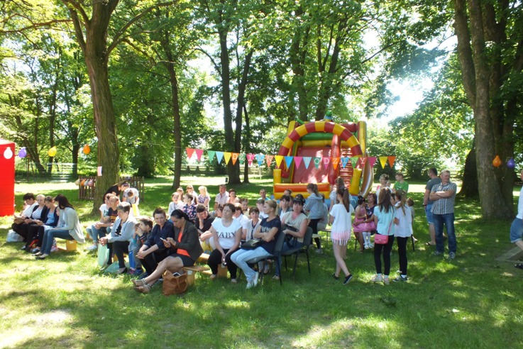 Następnie przyszedł czas na piknik. Dzieci czekała zjeżdżalnia i wiele atrakcji. Można też było najeść się do syta. Mamusie upiekły pyszne ciasta, Rada Rodziców zorganizowała watę cukrową i popcorn, a zapach kiełbasek z grilla smakowicie rozchodził się dookoła.