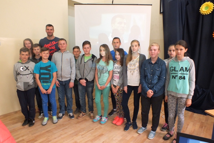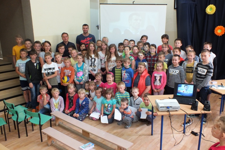 W dniu 14 czerwca odbyło się w S.P. w Przyłęku spotkanie ze sławnym sportowcem, który pochodzi z miejscowości Sielec w sąsiedniej gminie Żarnów. W spotkaniu wzięli udział uczniowie z naszej szkoły z nauczycielem wychowania fizycznego M. Koćminem. Sportowca wszyscy przywitaliśmy brawami, następnie zapoznaliśmy się z karierą zawodową sportowca, sukcesami. Obecnie G. Bociek jest zawodnikiem klubu KS ALURON Warta Zawiercie. Następnie przeprowadziliśmy wywiad, zadawaliśmy pytania, na które sportowiec chętnie udzielał odpowiedzi. Przyszedł czas na autografy i pamiątkowe zdjęcia. Uczniowie na zakończenie spotkania rozegrali krótki mecz. Spotkanie upłynęło w miłej atmosferze, żegnając się z p. Grzegorzem życzyliśmy mu wielu sukcesów w sporcie i wygranych meczów.