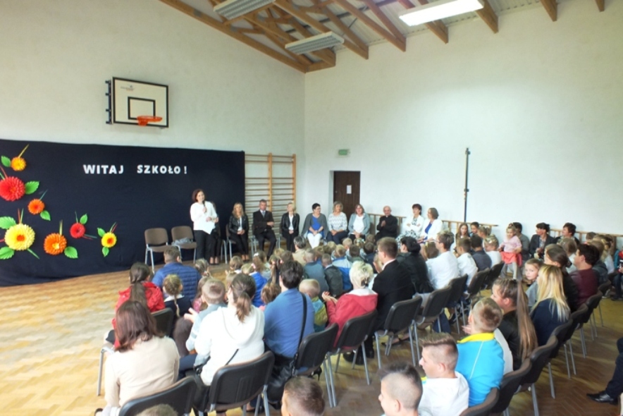 Uroczyste rozpoczęcie roku szkolnego, odmiennie niż w latach ubiegłych, odbyło się 4 września. Uczniów, rodziców, nauczycieli i przybyłych gości, między innymi księdza Jana Madeja, powitała pani dyrektor Sylwia Sarna – Jurek. Po części oficjalnej przedstawieni zostali wychowawcy poszczególnych klas oraz nauczyciele przedmiotów. Uczniom przedstawiono niezbędne informacje dotyczące funkcjonowania w szkole na starcie reformy systemu oświaty. Przydzielone zostały klasopracownie. Na zakończenie uczniowie wraz z wychowawcami udali się do swoich klas. Przygotował Bogusław Kurzyk.