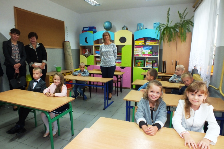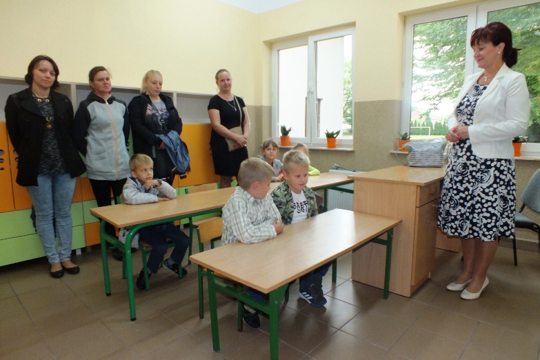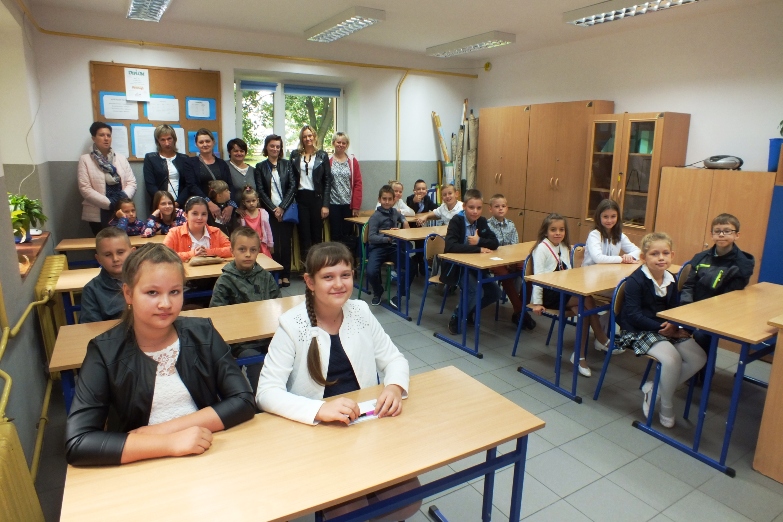 Pod przewodnictwem wychowawców uczniowie zapoznali się ze swoimi klasami. Do świeżo wygospodarowanej klasy I podopiecznych wprowadziła pani Beata Biegała. Klasa II z panią Bożena Jużwik zajęła miejsca w nowym dla nich pomieszczaniu. Pani Edyta Jackowska powitała swoich wychowanków z klasy III w pracowni połączonej z biblioteką. Klasa IV będzie się uczyć w zaadoptowanej dla ich potrzeb pracowni komputerowej a V pozostała w swoim znanym pomieszczeniu. Wspólnym wychowawcą dla tych uczniów będzie pani Małgorzata Biegała. Pani Małgorzata Wilk po powrocie z urlopu obejmie pieczę nad klasą VI w pracowni ekologicznej a pan Przemysław Borowski będzie wychowywał uczniów klasy VII. Wszystkie dzieci i młodzież z uśmiechem i zadowoleniem powitali swoich wychowawców i zasiedli w ławkach nie mogąc się doczekać pierwszych zajęć i pierwszych wspaniałych ocen.