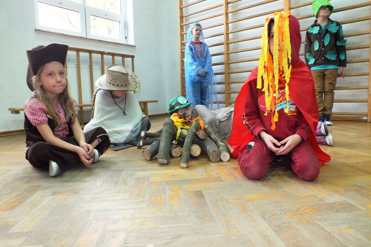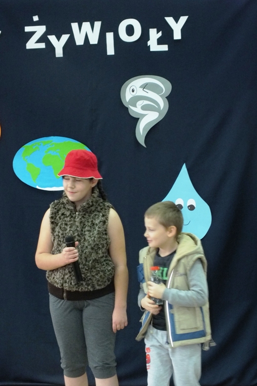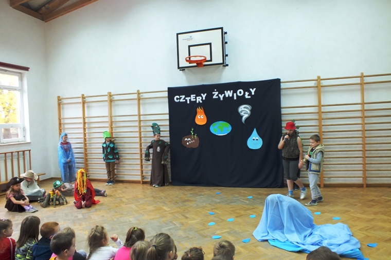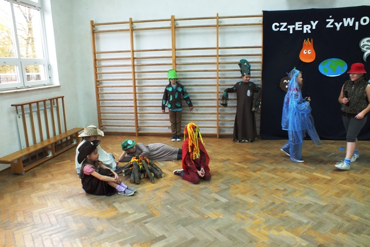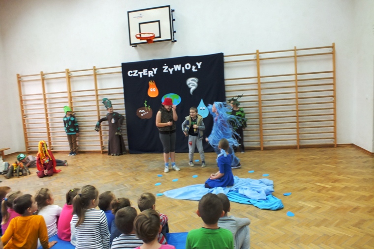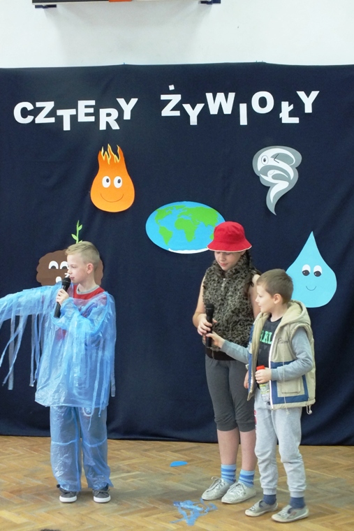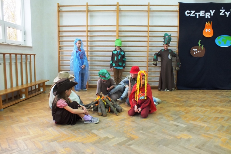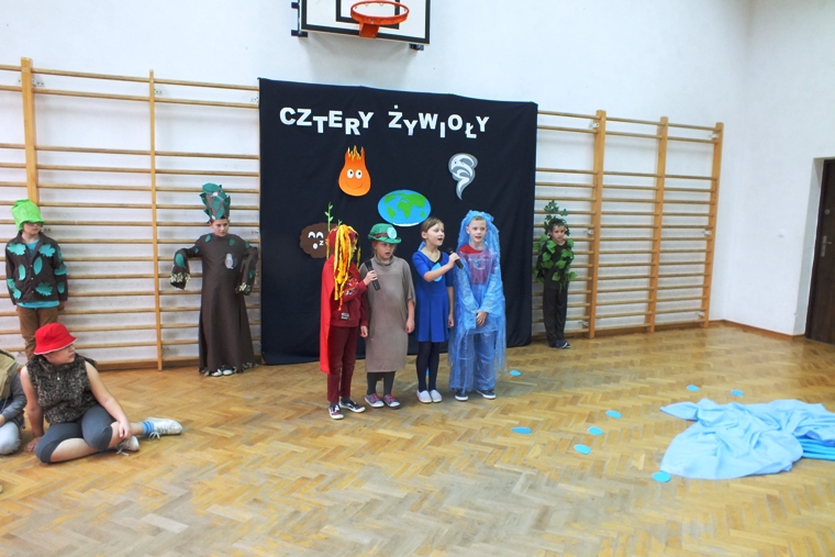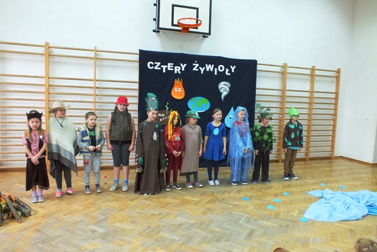 Na scenie pojawili się: Wędrowcy, Woda, Powietrze, Ziemia i Ogień. Znakomita gra aktorów, dekoracja oraz wspaniałe stroje przygotowane przez rodziców, dostarczyły widowni wielu wrażeń wzrokowych i słuchowych. Trzecioklasiści za swój trud i zaangażowanie zostali nagrodzeni gromkimi brawami.
