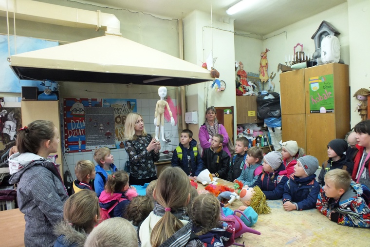 26 października uczniowie klas 0-III odbyli wspaniałą wycieczkę. Na początku oglądali zabawne ,,Przygody Koziołka Matołka’’ w wykonaniu aktorów Teatru Kubuś w Kielcach. Po przedstawieniu mogli w pracowni plastycznej zobaczyć, jak powstają lalki, pacynki, marionetki. Były też próby animacji. Kolejnym punktem była wizyta w ,,Magii Karmelu’’, gdzie uczniowie poznali kolejne etapy powstawania karmelowych słodyczy i to na co bardzo czekali, czyli samodzielne wykonanie swojego lizaka, za co otrzymali pamiątkowy dyplom. Radości było co niemiara. Będąc w Kielcach nie można ominąć Muzeum Zabawek i Zabawy. Czym bawiły się dzieci w XVIII, XIX i na początku XX wieku? Gdzie kupowano zabawki i kto je produkował? Czy wszystkie służyły do zabawy i czy dzieci z tamtych czasów bawiły się nimi tak samo, jak współczesne maluchy? Odpowiedzi na te i inne pytania dzieci otrzymały podczas zwiedzania muzeum. Zabawki mieszkają w baśniowym miasteczku, pełnym stylowych kamieniczek, ulicznego bruku i konstelacji gwiazd nad głową. Z głośników dobiegają odgłosy miasta a witryny, w których znajdują się zabawki rozświetlają się, gdy podchodzą do nich zwiedzający. Nie sposób opisać wszystkich (zapraszamy do obejrzenia zdjęć). Dzięki dobrej organizacji nasza wycieczka zyskała dodatkowy punkt programu, którym była wizyta w Zagnańsku, gdzie stoi pomnik przyrody Dąb Bartek - jedno z najstarszych drzew w Polsce. Jego wiek szacowany jest od 700 do 1200 lat. Według legend pod Bartkiem wypoczywał Bolesław Krzywousty i Kazimierz Wielki. Pełni wrażeń, zadowoleni, troszkę zmęczeni wróciliśmy do domów bogatsi o nową wiedzę i doświadczenie. Opracowała: B. Juźwik