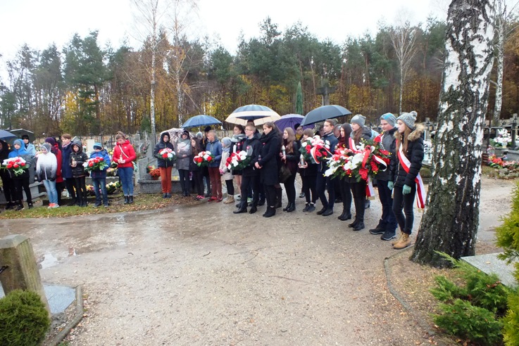 Obchody rozpoczął przemarsz na cmentarz parafialny w Paradyżu. Po wystąpieniu Księdza Proboszcza Adama Myszkowskiego, nastąpiło uroczyste składanie wieńców pod pomnikiem – grobem poległych partyzantów z OP AK „Błysk”. Kwiaty złożyli przedstawiciele samorządu gminnego, straży pożarnej oraz szkół i innych organizacji gminnych. Szkołę Podstawową w Sokołowie reprezentowała delegacja uczniów z klasy VII , VI i V – K. Kędziora, E. Wojciechowska, K. Grochala, E. Michalska, J. Wolska, D. Madej, A. Świdros, D. Bociek z nauczycielami – M. Biegała, P. Borowski, B. Kurzyk i dyrektorem szkoły – S. Sarna-Jurek. Po przejściu na plac z pomnikiem wystawionym ku czci polaków, którzy przyczynili się do odzyskania niepodległości, Wójt Gminy Paradyż – Wojciech Rudalski - nakreślił zebranym historyczny rys trudnej drogi do wolności. Apel poległych uświetniła uroczysta salwa honorowa. Pod pomnikiem złożono wiązanki kwiatów i zapalono znicze.