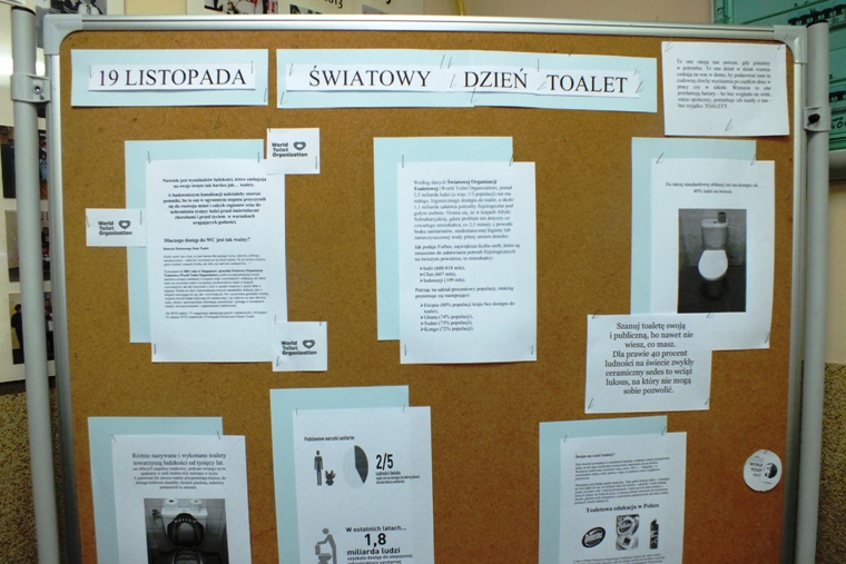 W 2001 roku w Singapurze powstała Światowa Organizacja Toaletowa (World Toilet Organization ), która za najważniejszą uważa poprawę sytuacji sanitarnej w krajach nisko rozwiniętych i edukację. To właśnie WTO ustanowiło 19 listopada Światowym Dniem Toalet. Tam, gdzie brakuje toalet — a dostępu do nich nadal nie ma 2,6 miliarda ludzi na świecie — odchody i ścieki trafiają prosto do jezior, rzek i wód przybrzeżnych. Często są to te same miejsca, z których czerpie się wodę do picia, co sprzyja niestety szerzeniu się rozmaitych chorób, głównie tych związanych z przewodem pokarmowym, ale także bardzo groźnych chorób zakaźnych