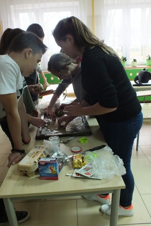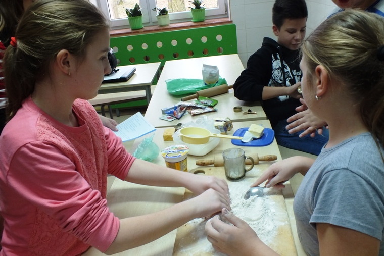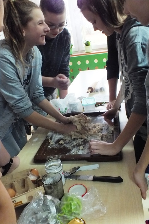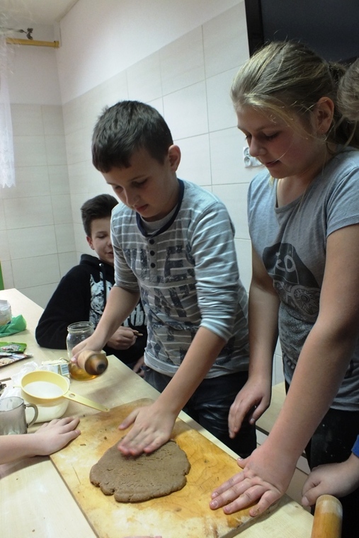 Zbliża się okres Świąt Bożego Narodzenia, czas świątecznych wypieków, ubierania choinki oraz innych przedświątecznych przygotowań. I to właśnie ta przedświąteczna „gorączka” stała się doskonałą okazją do zorganizowania w klasie VI lekcji pieczenia pierników. Uczniowie zostali podzieleni na trzy grupy. Zadaniem uczniów było: przygotować odpowiedzenie składniki, następnie ugnieść ciasto, wyciąć foremkami kształty, ułożyć na blachę i włożyć do pieca. Po upieczeniu pierniczków przyszedł czas na lukrowanie i ozdabianie. Na koniec odbyła się konsumpcja. Pierniczki były przepyszne i przepięknie ozdobione. Na pewno to nie ostatnia lekcja z wypieków, teraz kolej na ciasta.