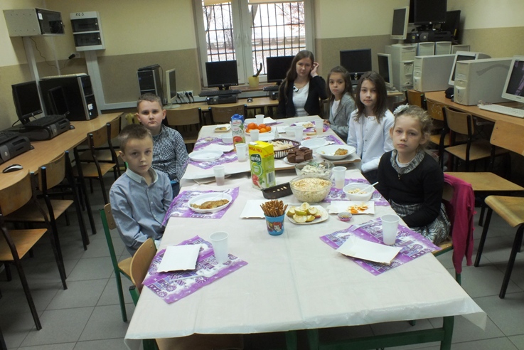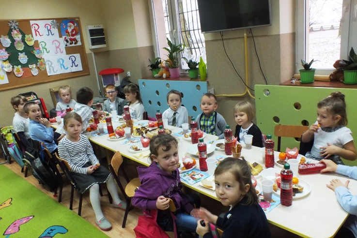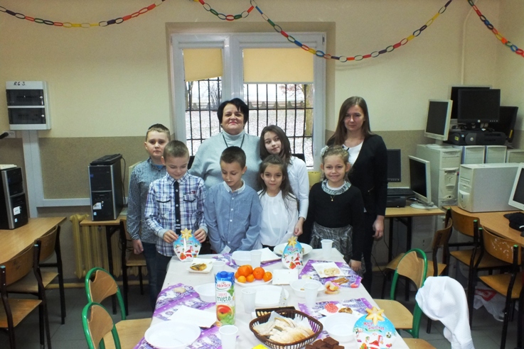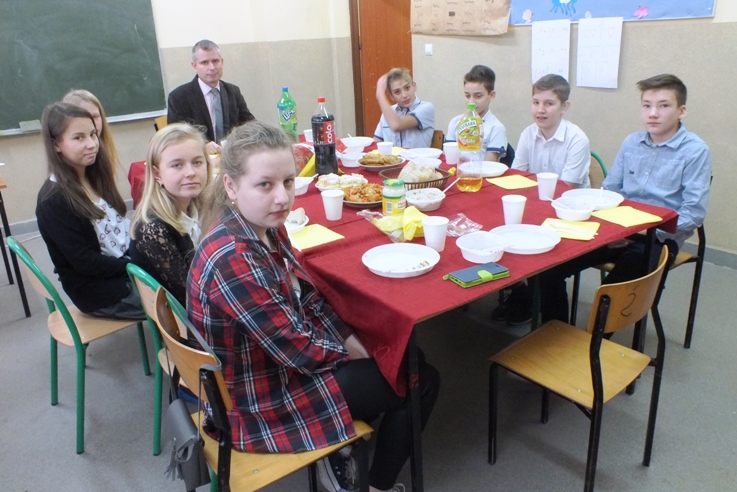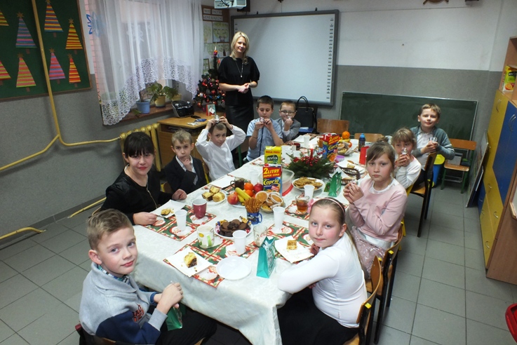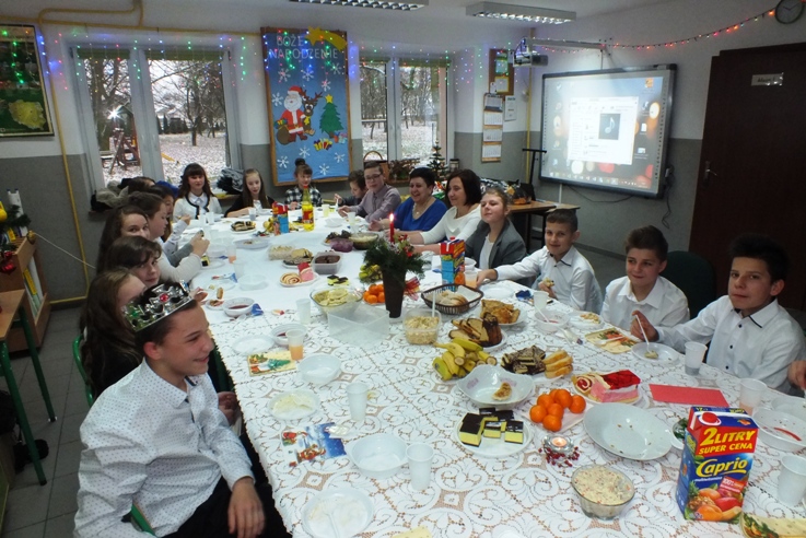 Boże Narodzenie to wspaniały czas, który spędzamy w gronie rodzinnym. Uczniowie, rodzice, nauczyciele i pracownicy Szkoły Podstawowej w Sokołowie to również jedna wielka rodzina. Dlatego co roku spotykamy się wraz z zaproszonymi gośćmi przy wspólnej wigilii. 21 grudnia b. r w naszej szkole od rana panowało wielkie poruszenie. Wyczuwało się świąteczną atmosferę, którą nasilały dekoracje, odświętne stroje, zapach ryby i pierogów. Uczniowie z wychowawcami przygotowywali spotkanie opłatkowe w klasach. P. dyrektor S. Sarna- Jurek i P. A. Gliszczyńska tradycyjnie przekazały uczniom opłatek i złożyły bożonarodzeniowe życzenia. Wspólne życzenia, poczęstunek i kolędowanie doskonale przyczyniają się do integracji zespołów klasowych.