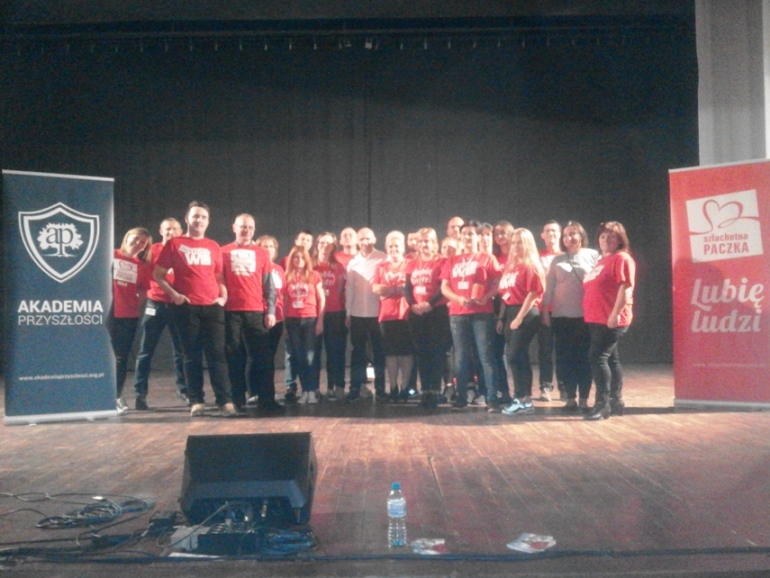Korzystając z zaproszenia 7 listopada Pani dyrektor Sylwia Sarna - Jurek uczestniczyła w spotkaniu inaugurującym tegoroczny projekt „Szlachetna Paczka”, ze znanym himalaistą i mówcą motywacyjnym Piotrem Cieszewskim. Jego organizacją zajęli się członkowie opoczyńskiej Szlachetnej Paczki. Warto zaznaczyć, że Piotr Cieszewski już od wielu lat działa w Szlachetnej Paczce, a w 2013 roku wniósł jej flagę na Mount Everest. Mnóstwo przybyłych gości (głównie młodzieży) z zapartym tchem słuchały opowieści himalaisty o wyprawie na Aconcaguę i Mount Everest. Obecnie Piotr Cieszewski spełnia się głównie jako trener przywództwa i mówca motywacyjny. Bazując na specjalistycznych szkoleniach oraz swoich doświadczeniach życiowych, podpowiada, w jaki sposób można poradzić sobie w trudnych sytuacjach, jak znaleźć w sobie siłę i motywację do zmiany na lepsze. Ponieważ prelekcja podparta była osobistymi doświadczeniami z pracy w korporacji budowlanej (Piotr Cieszewski przez wiele lat był dyrektorem 600-osobowego oddziału firmy), przygodami z wyprawy na Mount Everest oraz pokazem slajdów, zrobiła ogromne wrażenie na widowni. Spotkanie uświetnił występ wolontariuszki Marty Łydy, która zaśpiewała kilka pięknych piosenek. Po zakończeniu spotkania przyszedł czas na zbieranie autografów i robienie zdjęć. A po spotkaniu już tylko otwarcie bazy rodzin Szlachetnej Paczki i wybór Rodziny. Razem znowu pomożemy Rodzinie w potrzebie.