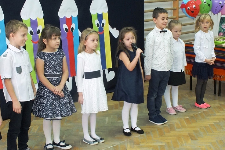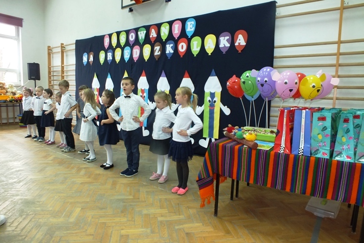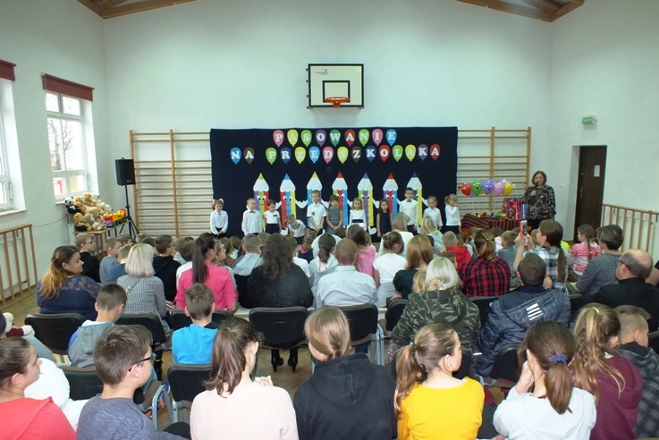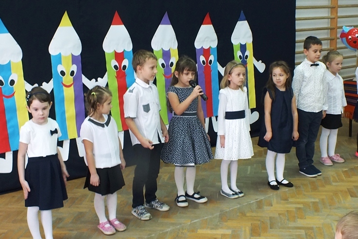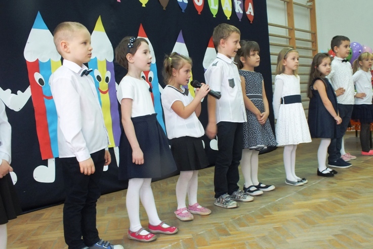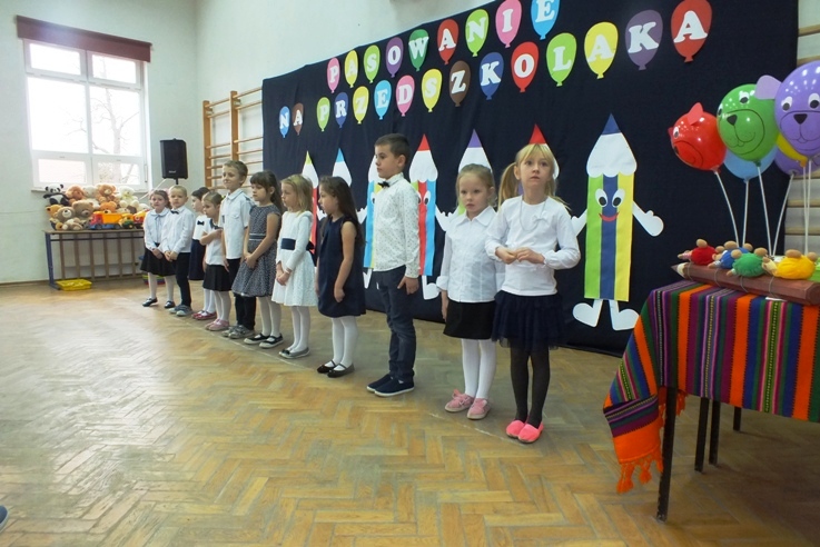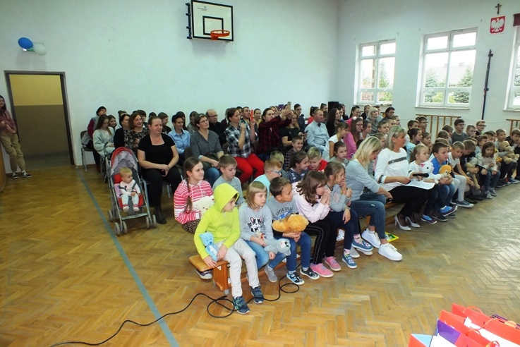 Dnia 25 listopada odbyła się w naszej szkole ważna akademia dla dzieci z oddziału przedszkolnego. Uroczystość rozpoczęła pani dyrektor Sylwia Sarna- Jurek, która przywitała dzieci, rodziców, grono pedagogiczne i zaproszonych gości w osobie księdza dziekana Adama Myszkowskiego. Następnie dzieci zaprezentowały swoje umiejętności – dając tym samym dowód, jak dużo już potrafią. Były więc: wierszyki, piosenki, zabawy ruchowe i tańce. Po części artystycznej, dzieci obiecały: zgodnie bawić się w przedszkolu, przychodzić każdego dnia z uśmiechem, słuchać pani i pomagać kolegom oraz być dzielnym przedszkolakiem. Po złożonej obietnicy, pani dyrektor dokonała uroczystego pasowania na przedszkolaka. Na pamiątkę tego pięknego wydarzenia każde dziecko otrzymało dyplom pasowania na przedszkolaka, prezent od rodziców, słodycze od pani dyrektor i księdza dziekana oraz "balonowego misia" od wychowawcy. Po akademii miał miejsce słodki poczęstunek przygotowany przez rodziców dzieci.