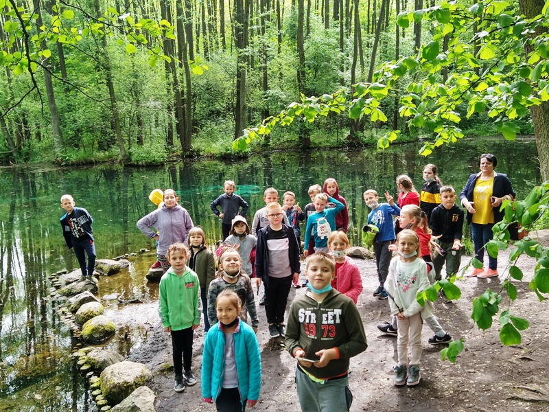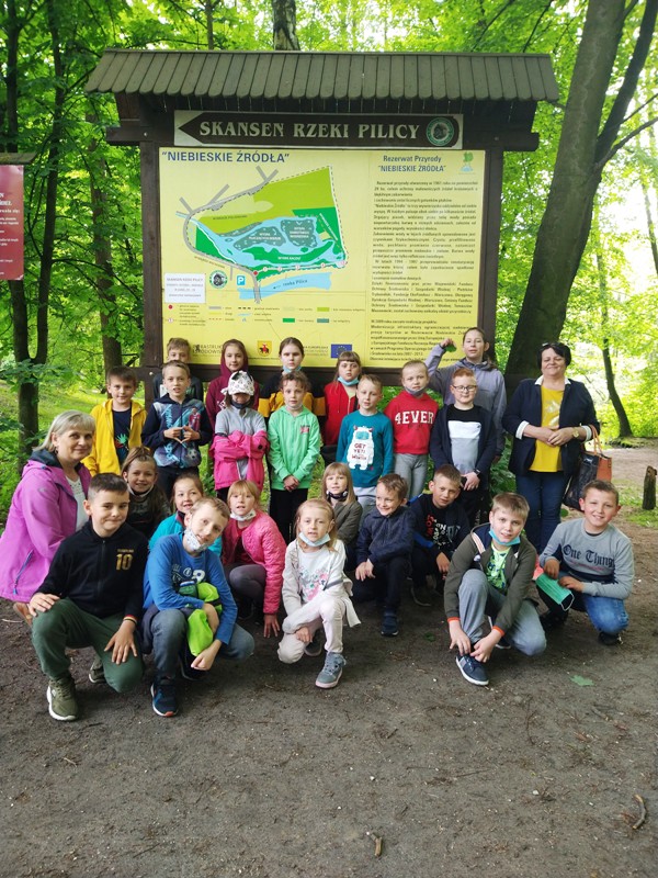 W ramach programu ekologicznego, realizowanego przez szkołę pod nazwą. „Woda źródłem życia na Ziemi” uczniowie klas I-IV byli 02.06.2021r na wycieczce w Tomaszowie Mazowieckim. Program realizowany jest dzięki dofinansowaniu z Wojewódzkiego Funduszu Ochrony Środowiska i Gospodarki Wodnej w Łodzi. Głównymi celami wycieczki była integracja uczniów i wzmocnienie więzi koleżeńskiej, poznawanie wybranych gatunków roślin i zwierząt żyjących w wodzie, wyrabianie u uczniów odpowiedzialności za stan środowiska, przybliżenie pojęć: skansen, wystawa, ekspozycja, eksponat. Program zawierał zwiedzanie z przewodnikiem Skansenu Rzeki Pilicy oraz Rezerwatu przyrody nieożywionej Niebieskie Źródła. Skansen Rzeki Pilicy powstaje od 2000 roku i jest pierwszym w Polsce muzeum na wolnym powietrzu poświęconym rzece. Niebieskie źródła to rezerwat przyrody nieożywionej o wybitnych walorach krajobrazowych, położony w dolinie Pilicy, jest ostoją wielu gatunków ptaków. Główny kompleks wodonośny stanowią spękane wapienie jurajskie, z których wytryska woda przybierająca niebiesko-błękitno-zieloną barwę. Dodatkowo uroku wywierzysku nadają pulsujące gejzery z piasku podrzucanego przez źródlaną wodę. Wycieczka odbyła się z zachowaniem reżimu sanitarnego, uczniowie pełni wrażeń wrócili do domu. Opiekunami na wycieczce były p. Bożena Juźwik, p. Jolanta Gajzler i p. Małgorzata Wilk.