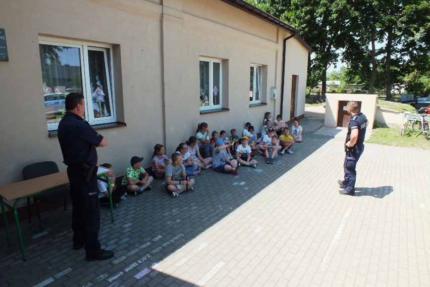 Przed zakończeniem roku szkolnego uczniowie naszej szkoły uczestniczyli w spotkaniu z policjantami. Głównym tematem było zachowanie bezpieczeństwa podczas wakacji. Panowie w mundurach poinformowali o zasadach zachowania podczas wyjazdów wakacyjnych, w czasie spędzania wolnego czasu w domu czy też pomocy rodzicom w prowadzeniu gospodarstwa rolnego. Informacje dotyczyły również zachowania na drodze podczas jazdy na rowerze i poruszania się pieszo. Wszyscy z zainteresowaniem przyjęli te ważne pouczenia. Policjantom z Paradyża serdecznie dziękujemy za przybycie i przypomnienie elementarnych zasad bezpieczeństwa.