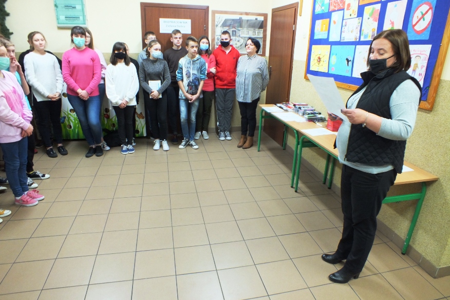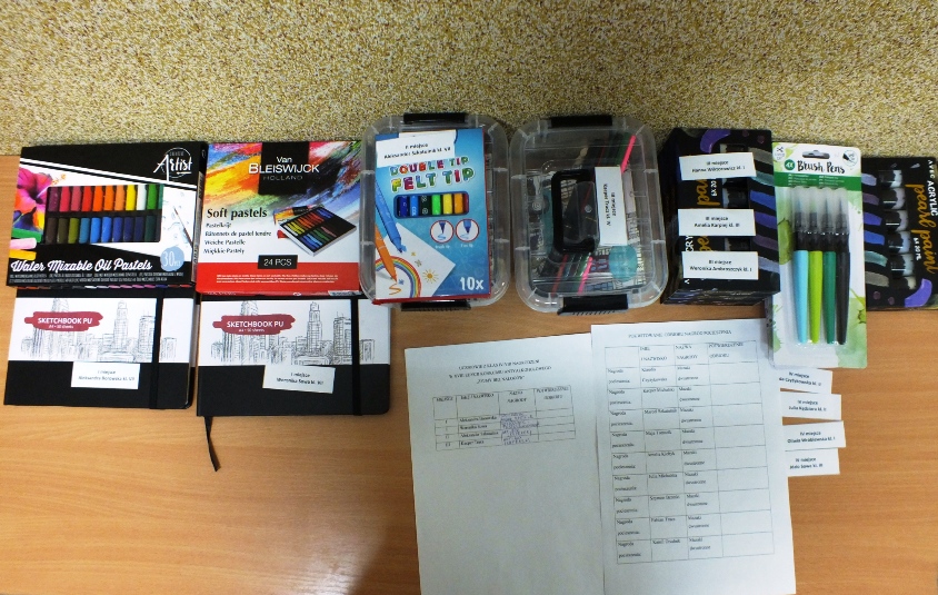 Nagrody pocieszenia otrzymali uczniowie: K. Grudnik – kl. III, J. Michalska, A. Kiełtyk, F. Tracz, Sz. Brzeski – kl. II , O. Wróblewska, M. Tomasik i M. Szkatulnik – Kl. I