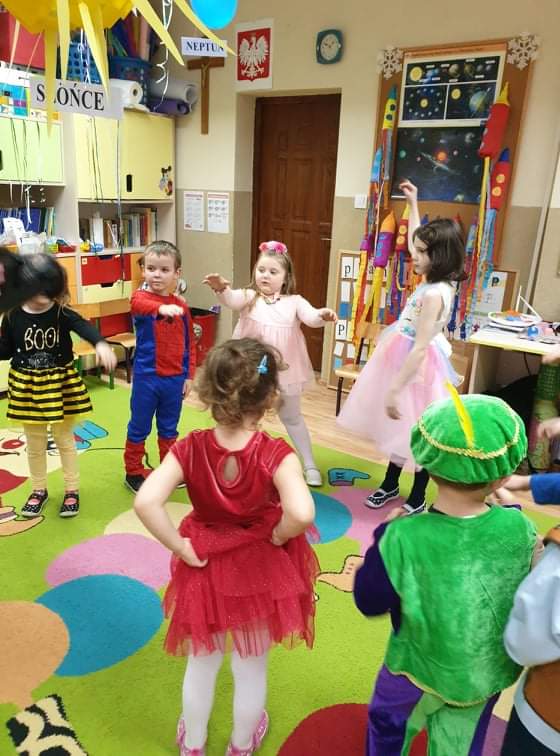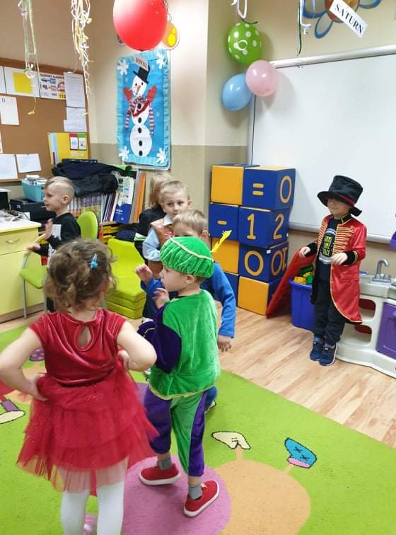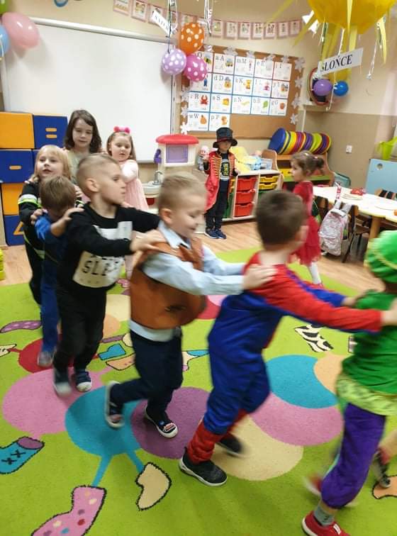 Bal karnawałowy dla przedszkolaków to dzień niezwykły, często wyczekiwany przez wiele tygodni. Jest atrakcją bardzo lubianą przez dzieci, dostarczającą im wielu przeżyć i radości. Tak też było u nas 11 lutego 2022r. W oddziale przedszkolnym odbył się bal karnawałowy. Tego dnia już od rana w przedszkolu pojawiały się kolorowe postacie. Dzieci przebrane były za bohaterów znanych bajek, można było spotkać wróżkę, królewnę, pszczółkę, Panią wiosnę, strażaka, Spider-Mana... nie sposób zliczyć i wymienić tych wszystkich postaci! Na sali podczas pląsów robiło się kolorowo, wszyscy bawili się wesoło, uśmiech nie znikał z twarzy mimo chwilowego zmęczenia. Dziękujemy dzieciom i rodzicom za zaangażowanie w przygotowanie pięknych balowych strojów oraz poczęstunku.