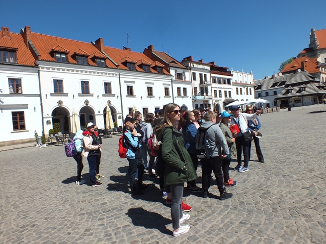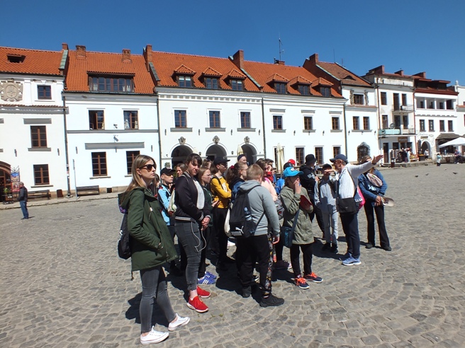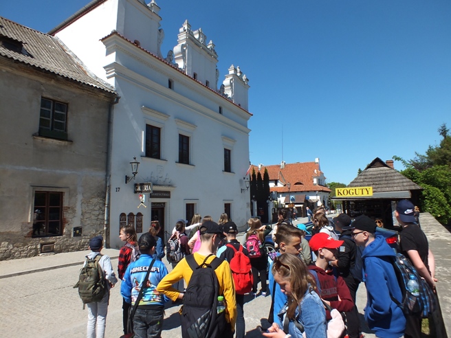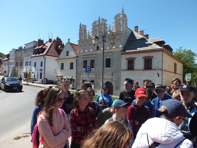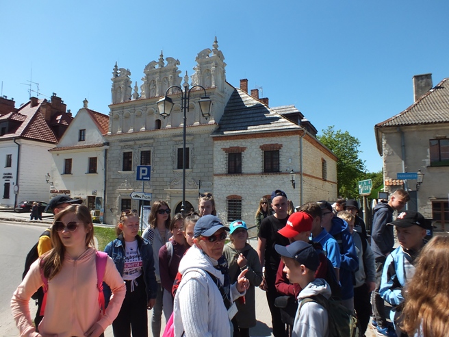 Niespełna sześć miesięcy minęło od wycieczki po Piastowskim Szlaku, a nasi uczniowie znów w bieżącym roku szkolnym wyruszyli w Polskę. Tym razem 18 maja wyjechali na trzydniową wycieczkę po Ziemi Lubelskiej i Roztoczu, gdzie przemierzali szlak od Kazimierza Dolnego nad Wisłą przez Lublin i Zwierzyniec po Zamość. Po raz kolejny wycieczka odbyła się dzięki olbrzymiemu wsparciu finansowemu Ministerstwa Edukacji i Nauki, jakie nasza szkoła otrzymała w ramach programu „Poznaj Polskę”. Miała ona charakter historyczno-krajoznawczy, dlatego była okazją do poznania przez uczniów historii oraz walorów kulturowych Kazimierza Dolnego, Lublina i Zamościa oraz walorów przyrodniczych malowniczego Roztocza. Ważnym jej celem było uwrażliwienie uczniów na piękno ojczystej przyrody i bogactwo kulturowe Ziemi Lubelskiej i Zamojszczyzny. Pod kierownictwem p. Przemysława Borowskiego i opieką p. Małgorzaty Biegały i p. Katarzyny Ślązak uczniowie zwiedzili w Kazimierzu Dolnym: malownicze kamieniczki oraz stary kazimierzowski rynek, kościół farny, a także ruiny zamku, zabytkową basztę oraz górę Trzech Krzyży, skąd mogli podziwiać przepiękną panoramę miasta z widokiem na Wisłę. Uczniowie podążali również wzdłuż jednego z malowniczych wąwozów lessowych, które są charakterystyczne dla tego regionu geograficznego. W drugim dniu uczniowie udali się do Zwierzyńca, po drodze odwiedzając słynny Szczebrzeszyn, gdzie zwiedzili starą cerkiew i synagogę oraz mogli uwiecznić się na pamiątkowej fotografii przy pomniku chrząszcza – bohatera językowych łamigłówek i rymowanek. W Zwierzyńcu dzieci wędrowały ścieżkami Roztoczańskiego Parku Narodowego, zwiedzili także Pałac Plenipotenta, gdzie aktualnie znajduje się siedziba parku narodowego. Uczestnicy wycieczki podążali również malowniczymi alejkami zespołu parkowego, gdzie zwiedzili Kościół Na Wodzie – jeden z najpiękniejszych i najbardziej rozpoznawalnych zabytków nie tylko tego małego miasteczka, ale całego Roztocza. Następnie wszyscy udali się w dalszą podróż do Zamościa. W tym przepięknym renesansowym mieście uczniowie podziwiali perłę architektoniczną wschodniej Polski – tj. zabytkowy zamojski rynek, który znajduje się na Liście Światowego Dziedzictwa UNESCO. Tam też zwiedzili Muzeum Zamojskie, Katedrę Zmartwychwstania Pańskiego i św. Tomasza Apostoła oraz Twierdzę Zamość, gdzie uroczyście wystrzelili salwę armatnią jako znak swej wizyty w zamojskim grodzie. W trzecim dniu wycieczki uczniowie zwiedzili Lublin – stolicę województwa lubelskiego, największą aglomerację Ziemi Lubelskiej. Tam wszyscy podziwiali zabytki przepięknej starówki, zwiedzili Archikatedrę Lubelską oraz mieszczące się na lubelskim zamku Muzeum Historii Miasta Lublina, gdzie m.in. mogli podziwiać jedno z najważniejszych dzieł malarskich Jana Matejki, upamiętniające unię personalną pomiędzy Polską i Litwą. Jedną z atrakcji, która na uczniach wywarła wielkie wrażenie było wieczorne zwiedzanie Lubelskiej Trasy Podziemnej – 280-metrowej trasy turystycznej, biegnącej pod Rynkiem i kamienicami Starego Miasta. W drodze powrotnej uczniowie zwiedzili również zespół architektoniczno – parkowy Muzeum Jana Kochanowskiego w Czarnolesie, który był ostatnim punktem wycieczki.