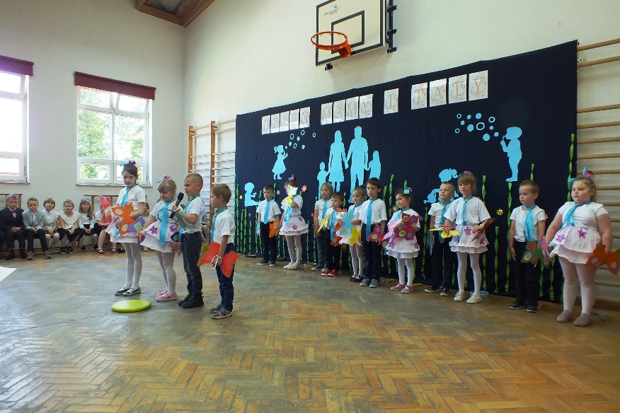 Dnia 31maja w naszej szkole odbyło się wielkie święto – Akademia z okazji ,, Dnia Mamy i Taty’’. Wszystkich zebranych serdecznie powitała pani dyrektor S. Sarna-Jurek, która podkreśliła, jak ważną rolę w naszym życiu pełni rodzina. Montaż słowno – muzyczny przedstawili uczniowie klas 0-III recytując wiersze, śpiewając piosenki, prezentując zabawy ruchowe do muzyki, tańcząc i grając na instrumentach. Następnie dzieci wręczyły rodzicom własnoręcznie wykonane upominki. Po części artystycznej wszyscy udali się na boisko szkolne gdzie czekały wspaniałe atrakcje: dmuchana zjeżdżalnia, wata cukrowa, popcorn, baloniki, tatuaże, bańki mydlane, warkoczyki, malowanie buziek. Rodziny spędzały czas przy kiełbaskach i słodkościach przygotowanych przez rodziców . Tradycyjnie odtańczyliśmy "Belgijkę" oraz rywalizowaliśmy w konkursach sportowych. Dziękujemy Radzie Rodziców za zorganizowanie atrakcji dla dzieci oraz wszystkim za obecność i wspaniałą zabawę.