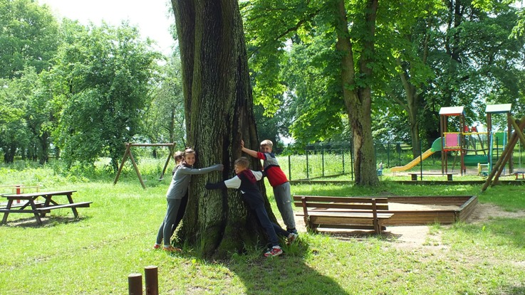 Nasza szkoła wzięła udział w ogolnopolskiej kampanii "Przytul sie do drzewa". W ramach akcji uczniowie poszczególnych klas wyszli na dwór i przytulili się do drzew znajdujących się w przyszkolnym zabytkowym parku, otaczając je czule swoją miłością! Dzięki temu drzewa chociaż przez chwilę poczuły się bezpieczne, a dzieci sprawiły, że takimi małymi krokami jesteśmy w stanie pokazać całej Polsce, że sprzeciwiamy się celowym podpaleniom lasów i niszczeniu drzew! Ponadto, drzewa nie będą wobec nas obojętne. Faktem jest, że drzewoterapia, czyli zielona energia drzew ma niesamowity, uspokajający wpływ na nasze zachowanie. Dzięki akcji PRZYTULENIU się do DRZEWA nie tylko pokazaliśmy mądrą postawę leśną, ale i zyskaliśmy coś dla siebie.