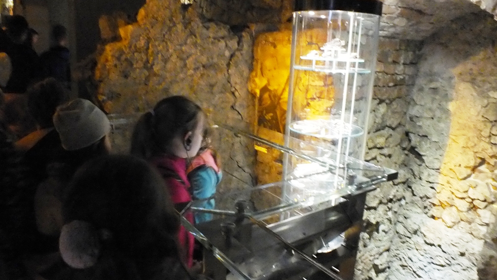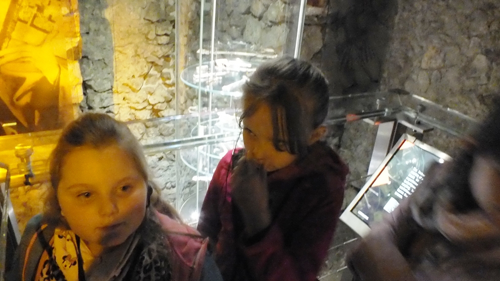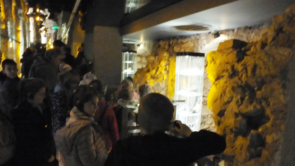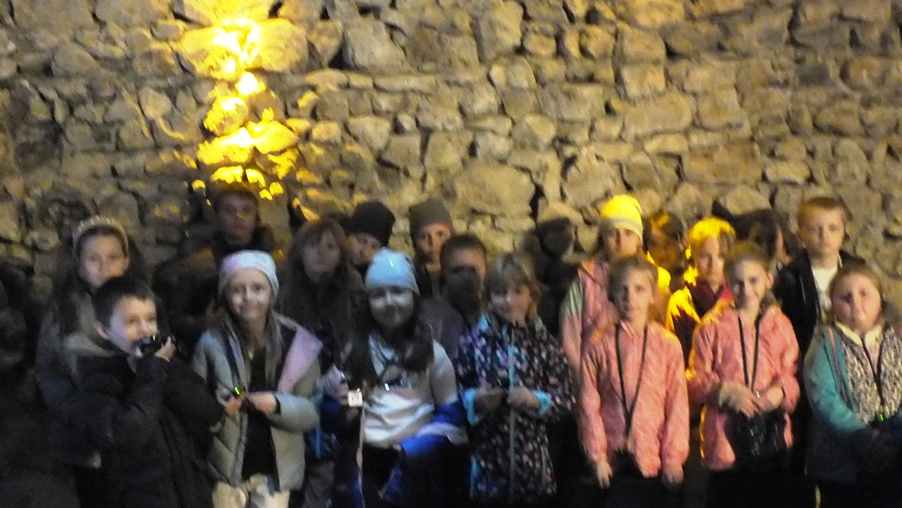 Wycieczkę rozpoczęliśmy od wizyty w Muzeum Historycznym Miasta Krakowa. Zwiedziliśmy Rynek Podziemny, który znajduje się pod wschodnią częścią płyty Rynku Głównego. Zajmuje powierzchnię ponad 6 tys. m². Podziemna ekspozycja przedstawia zarówno historię Krakowa, jak również ośrodki handlowe i kulturalne średniowiecznej Europy. W czasie zwiedzania dzieciom towarzyszyły odgłosy gwaru targu i płonących zabudowań. Największe wrażenie na dzieciach zrobił ekran z pary wodnej oraz wiele eksponatów przedstawionych w trójwymiarze na ekranach dotykowych.