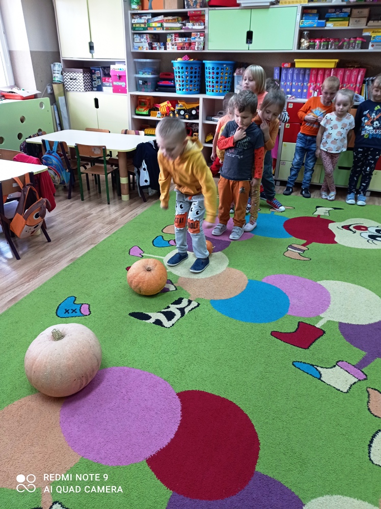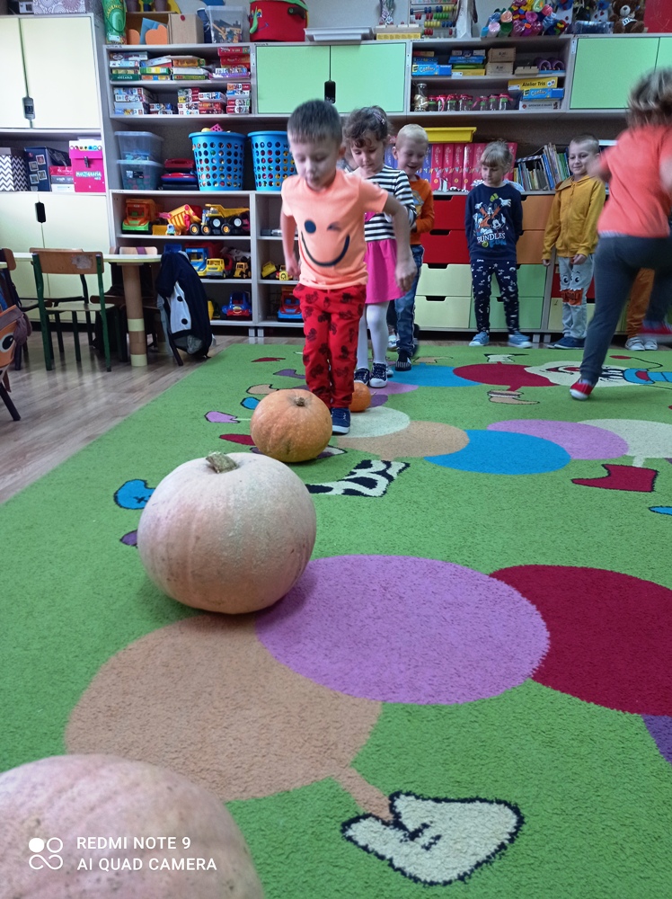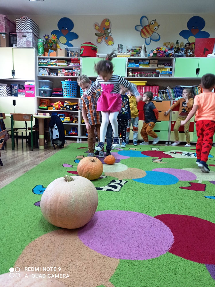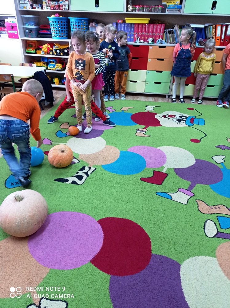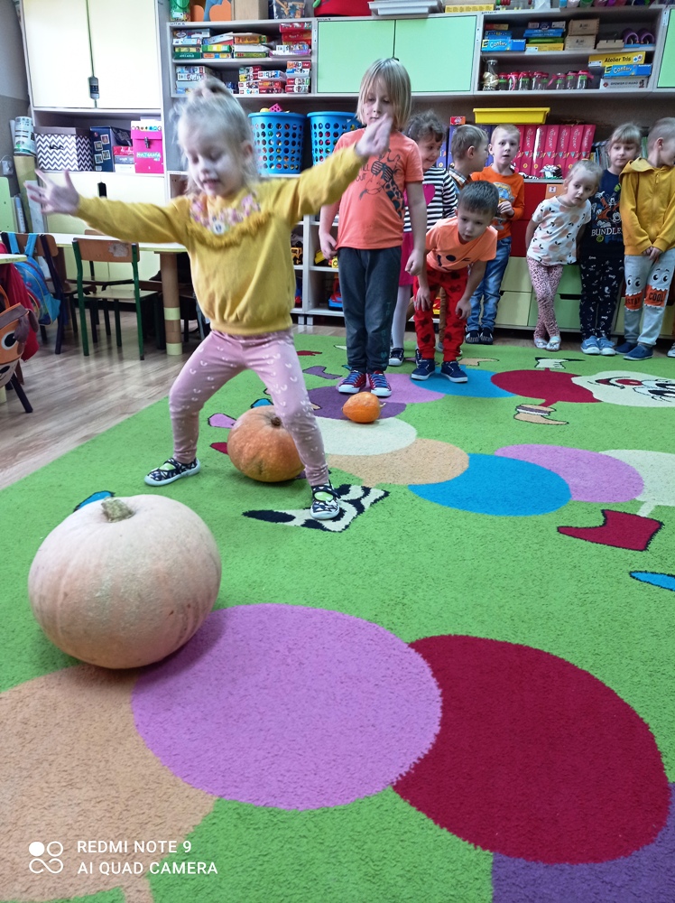 Nadchodzi koniec jesiennych zbiorów, więc to najlepszy czas by ogłosić „Dzień Dyni” . W naszym oddziale przedszkolnym święto to obchodziliśmy w piątek 28 października, wtedy to wśród dzieci ubranych na pomarańczowo, można było poczuć się jak na dyniowej grządce. Dzieci poznały wielką różnorodność dyń i wzbogaciły wiedzę na ich temat. Dowiedziały się, że dynia jest bardzo zdrowym warzywem, że można z niej przygotować wiele dań. Następnie przystąpiliśmy do dyniowych zabaw: klasyfikowania dyń wg wielkości, koloru i kształtu, szeregowanie od największej dyni do najmniejszej, przeliczania dyń. Wśród zabaw ruchowych były dyniowe kręgle, skoki przez różnej wielkości dynie, slalom dyniowy oraz zabawy taneczne. Dzieci z zapałem zabrały się również do prac plastycznych, powstały piękne prace. Ten dzień przyniósł wiele niezapomnianych wrażeń, ciekawości, odkrywania i zabawy.