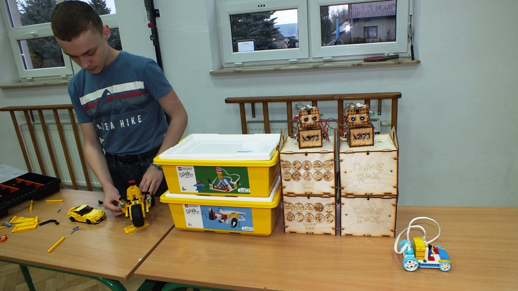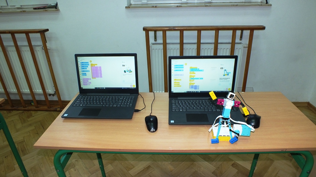 Na zakończenie omówione zostały projekty wykonane na zajęciach pozalekcyjnych w szkole. Były to roboty zbudowane z klocków LEGO SPIKE Essential i Prime, zaprogramowane przy pomocy aplikacji LEGO oraz śnieżynki wydrukowane przy użyciu drukarki 3D. Dzieci mogły podziwiać również aniołki uszyte przez uczniów na zajęciach dodatkowych.