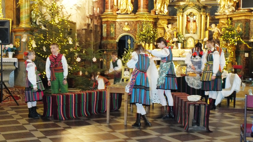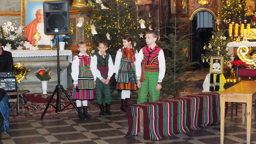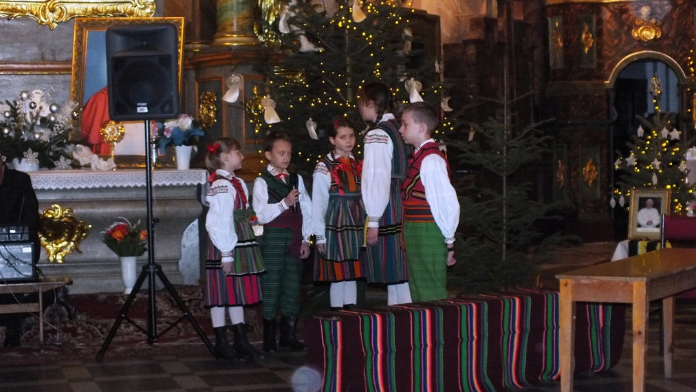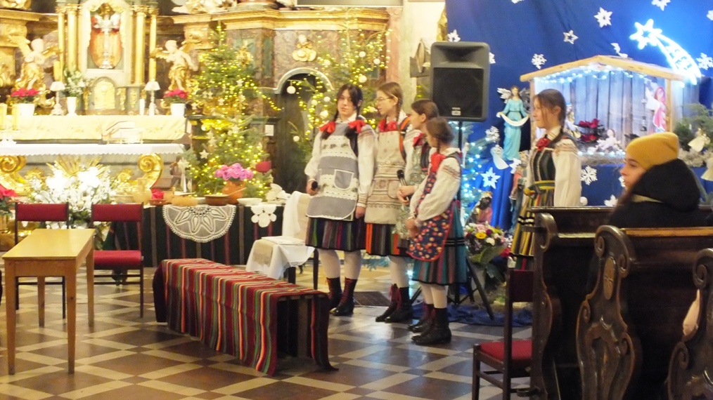 Wyśpiewali tradycyjne polskie kolędy z towarzyszeniem kapeli ludowej pod kierunkiem p. Haliny Biniek.