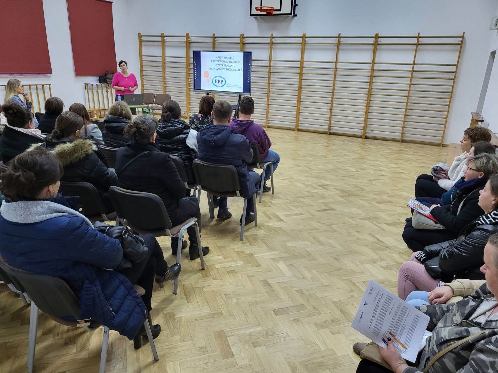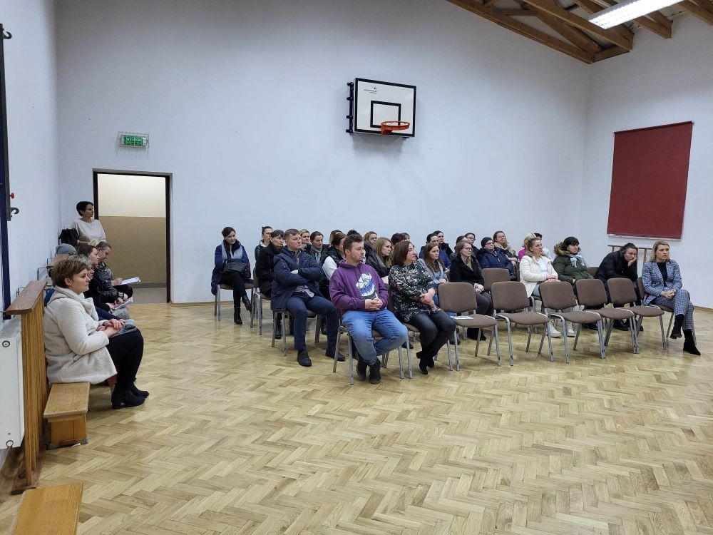 W miesiącu lutym odbyło się spotkanie naszych rodziców z panią Haliną Kucharską i panią Aleksandrą Kopytowską. Wyżej wyymienione panie na co dzień pracują w Poradni Psychologiczno-Pedagogicznej w Opocznie. Głównym punktem i powodem spotkania była prelekcja na temat: ”Jak wspierać i motywować dziecko w wypełnianiu obowiązków szkolnych?”. Rodzice z zainteresowaniem wysłuchali porad i wskazówek oraz w miarę potrzeb indywidualnie konsultowali ewentualne trudności wychowawcze i edukacyjne.