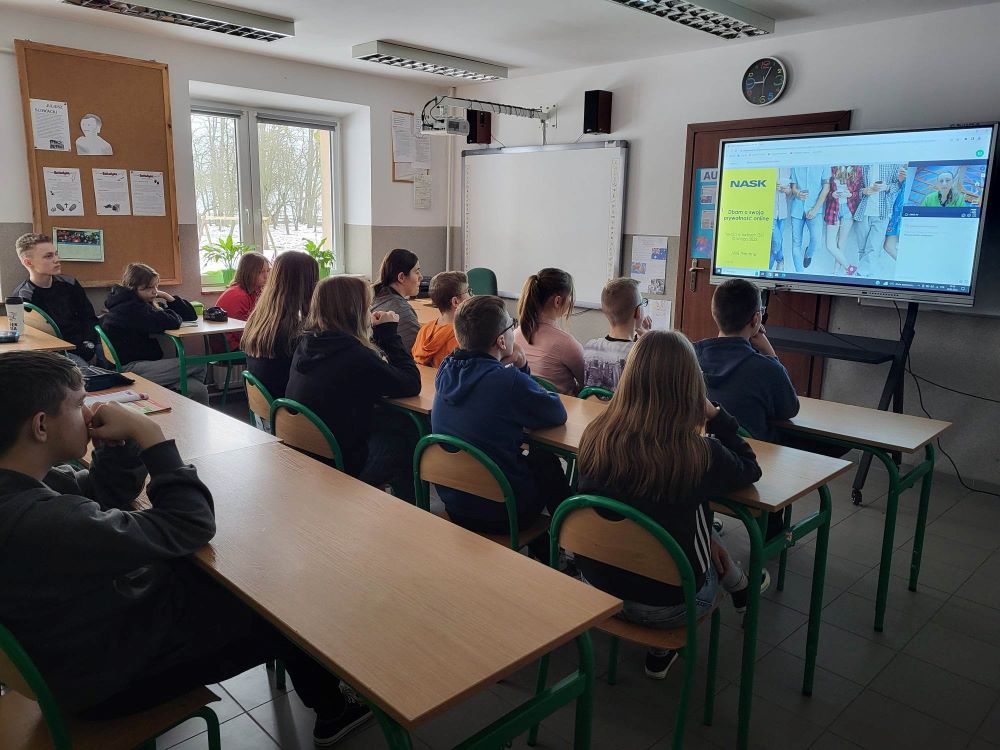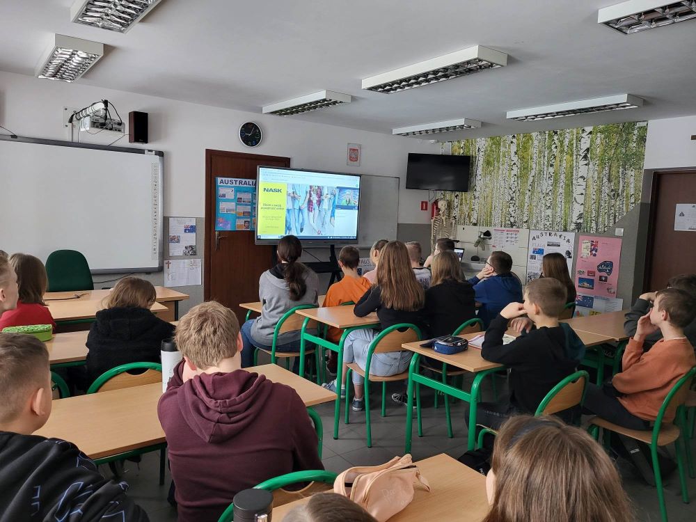 W związku z obchodzonym w dniu 7 lutego Dniem Bezpiecznego Internetu nasi uczniowie wzięli udział w lekcjach profilaktycznych poświęconych cyberbezpieczeństwu. Przypomnieli sobie zasady netykiety oraz zasady uważności online. Omówione zostały również takie problemy jak: uzależnienie od internetu, hejt, fake newsy. Dużo uwagi poświęciliśmy w tym roku także sztucznej inteligencji, która potrafi generować obrazy, pisać teksty a nawet prowadzić rozmowę na poziomie porównywalnym do człowieka. Oprócz lekcji informatycznych – przeprowadzonych stacjonarnie, uczniowie uczestniczyli w lekcjach online organizowanych przez Polskie Centrum Programu Safer Internet. Były to lekcje z podziałem na grupy wiekowe: