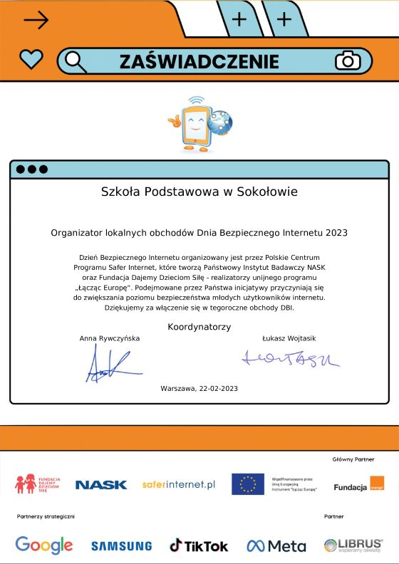 - „Sieciaki – poznaj bezpieczny internet” dla klas młodszych,