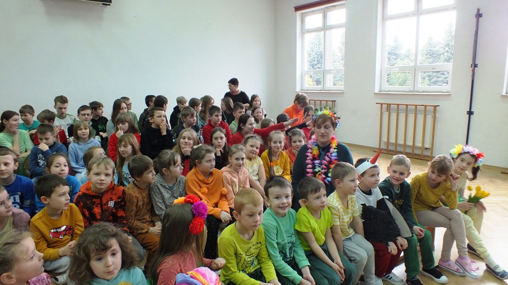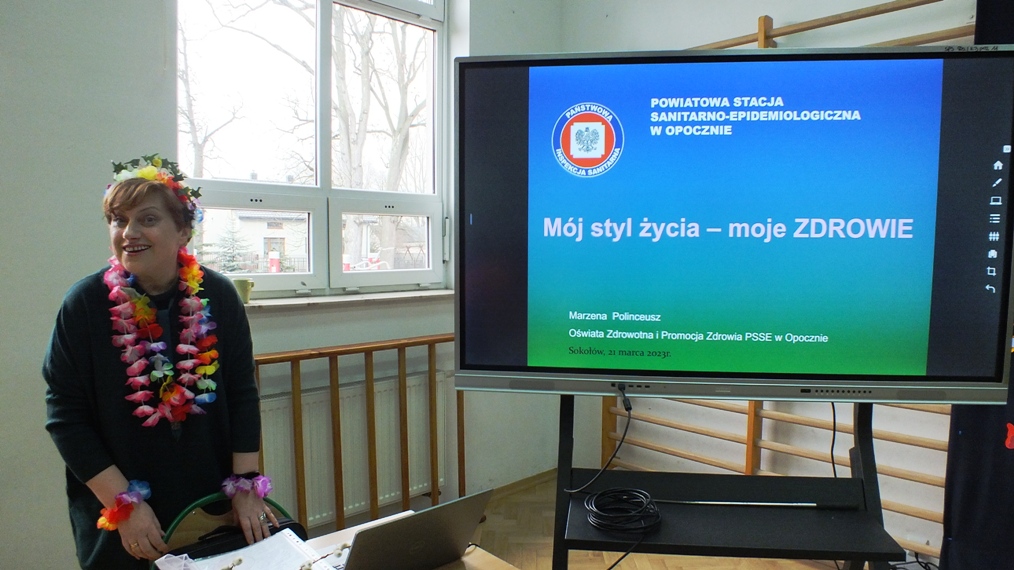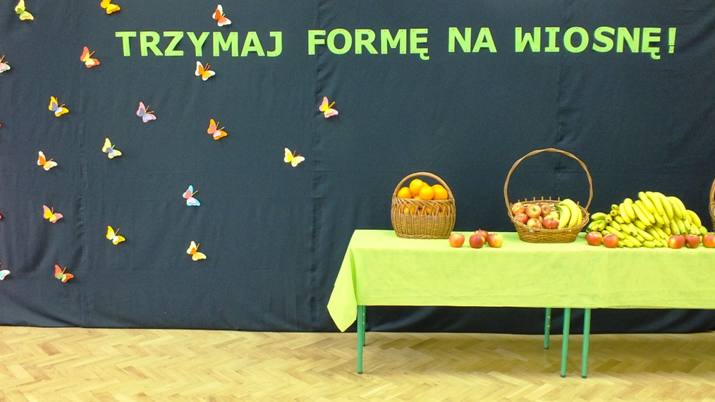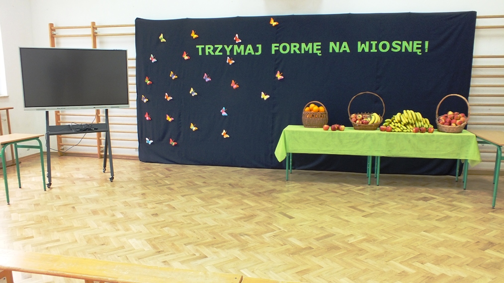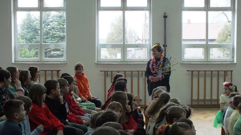 21 marca spotkaliśmy się w sali gimnastycznej z sympatyczną i pogodną „Panią Wiosną”. Przybyła ona do nas, aby wprowadzić nas w wiosenny nastrój oraz przekazać nam wiele cennych informacji na temat zależności pomiędzy stylem życiem a zdrowiem. Prelekcja oraz prezentacja dotyczyła takich zagadnień jak: zachowania zdrowotne i antyzdrowotne, piramida zdrowia i aktywności fizycznej, talerz zdrowia, zasada 4 „U”, błędy żywieniowe, zaburzenia odżywiania. W rolę kwitnącej „Pani Wiosny” wcieliła się p. Marzanna Polinceusz z Powiatowej Stacji Sanitarno-Epidemiologicznej w Opocznie. Po wygłoszeniu prelekcji odbyła się wspólna degustacja świeżo wyciskanych soków – marchwiowego i pomarańczowego. Uczestnicy spotkania otrzymali owoce, które jak wiemy służą naszemu zdrowiu. Wydarzenie odbyło się w ramach realizowanego w naszej szkole programu PSSE „TRZYMAJ FORMĘ!”