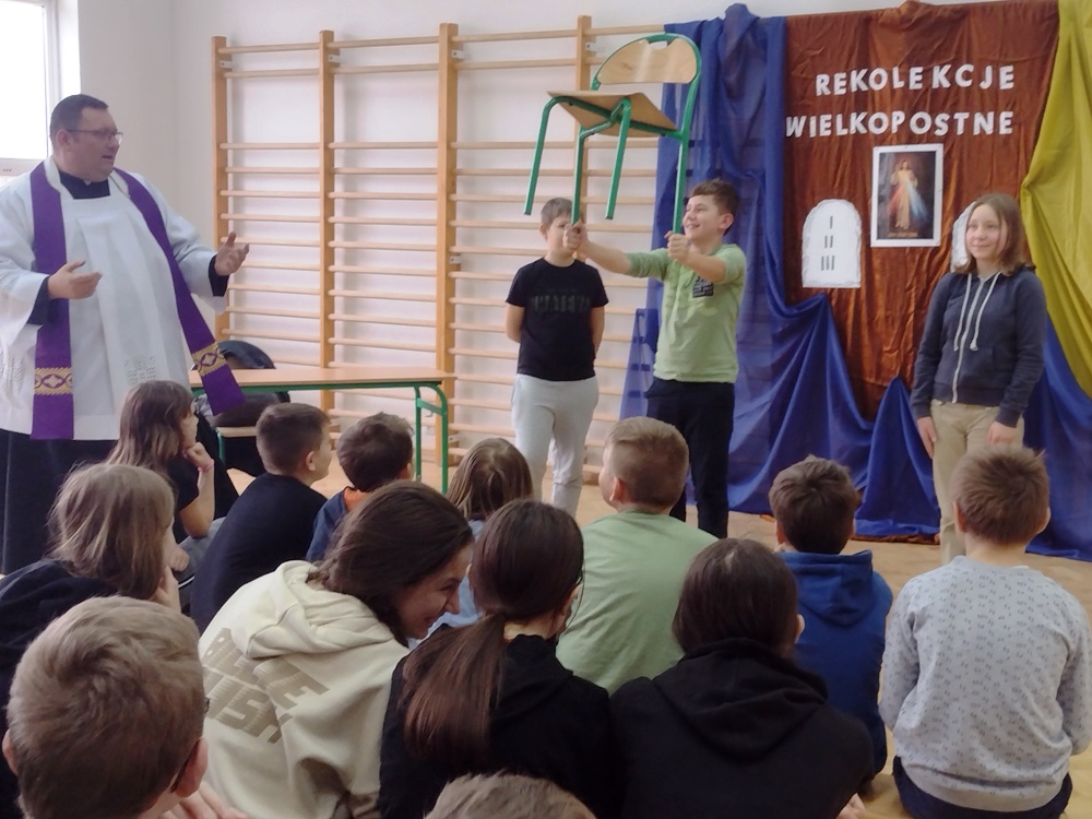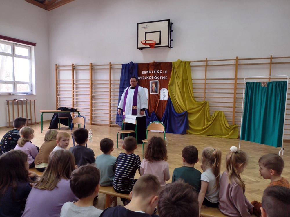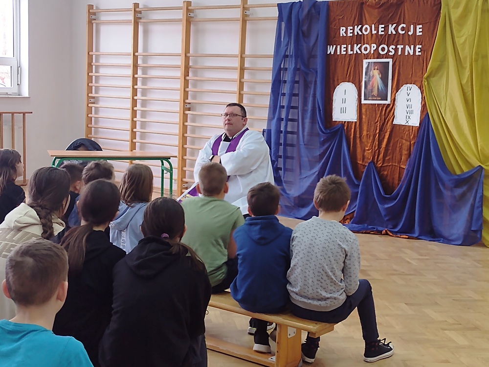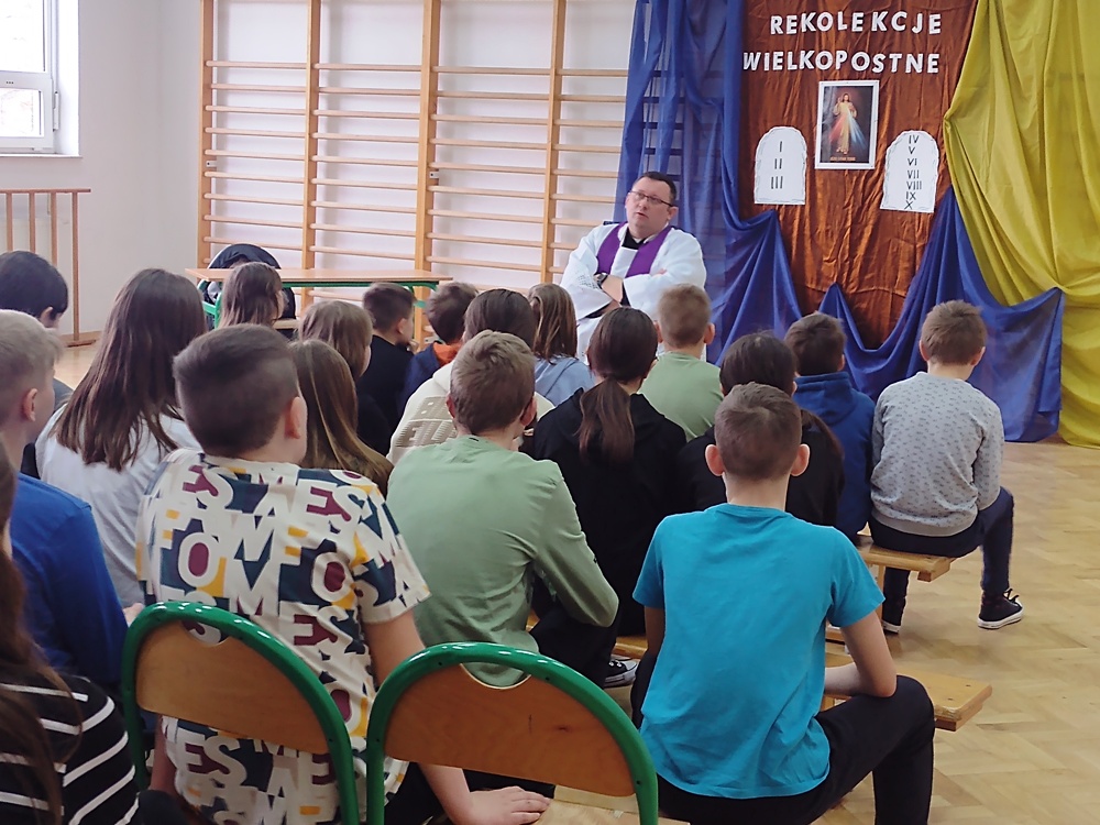 W dniach 29, 30 i 31 marca 2023r. w naszej szkole odbyły się Rekolekcje Wielkopostne. Prowadził je ks. Mariusz Przybycień z Opoczna. Ksiądz Rekolekcjonista uczył nas jak umacniać naszą wiarę w Pana Jezusa, nadzieję i miłość. Ksiądz zwrócił naszą uwagę jak ważne jest słuchać Pana Boga. Podtrzymywać dobre relacje z najbliższymi nam ludźmi: rodzicami, rodzeństwem, nauczycielami, aby szczęśliwie iść przez życie.