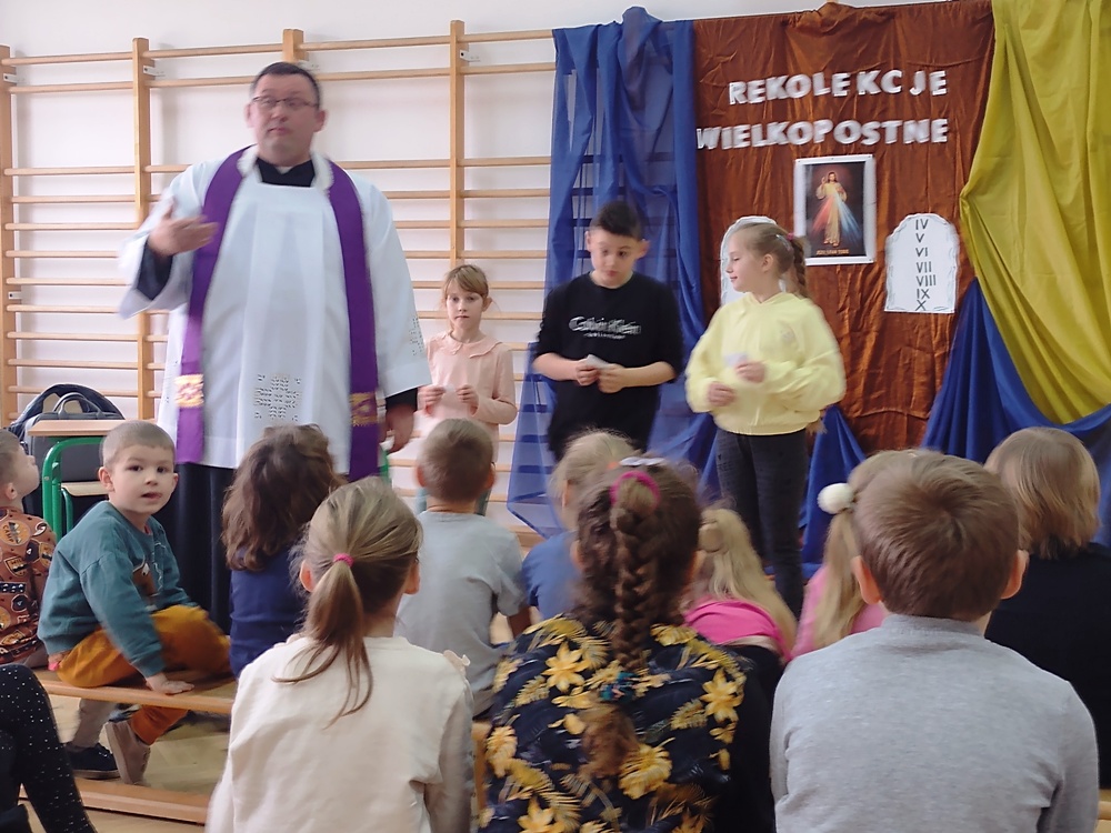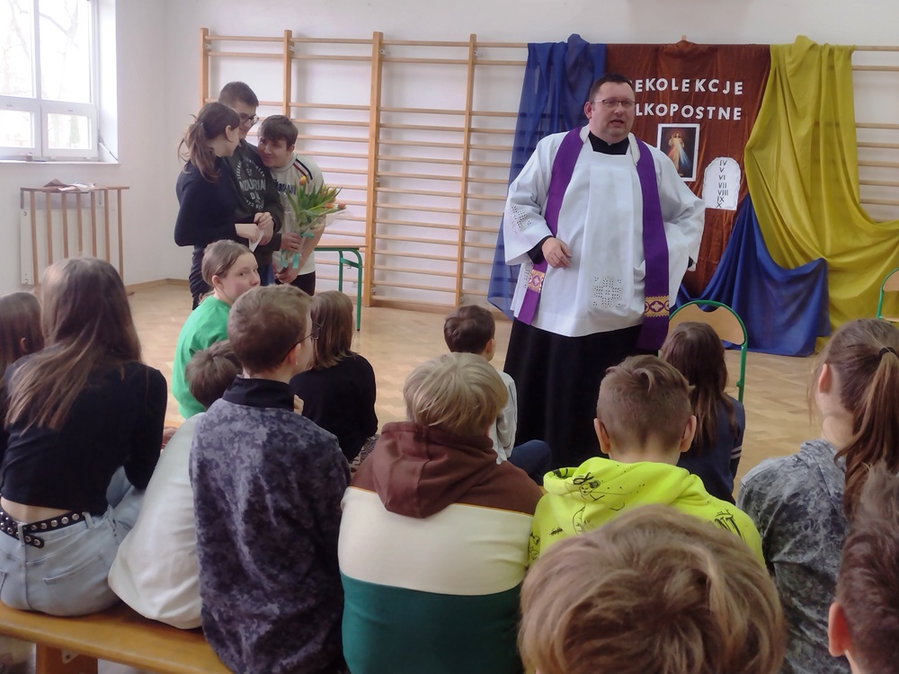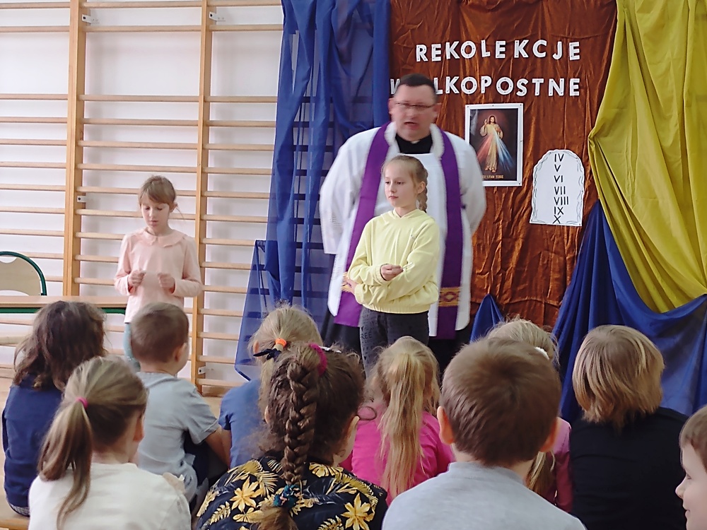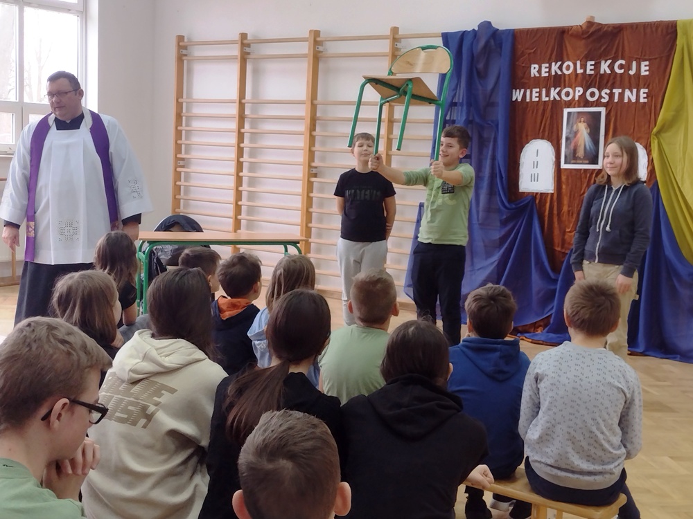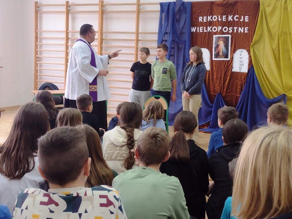 W dniach 29, 30 i 31 marca 2023r. w naszej szkole odbyły się Rekolekcje Wielkopostne. Prowadził je ks. Mariusz Przybycień z Opoczna. Ksiądz Rekolekcjonista uczył nas jak umacniać naszą wiarę w Pana Jezusa, nadzieję i miłość. Ksiądz zwrócił naszą uwagę jak ważne jest słuchać Pana Boga. Podtrzymywać dobre relacje z najbliższymi nam ludźmi: rodzicami, rodzeństwem, nauczycielami, aby szczęśliwie iść przez życie.