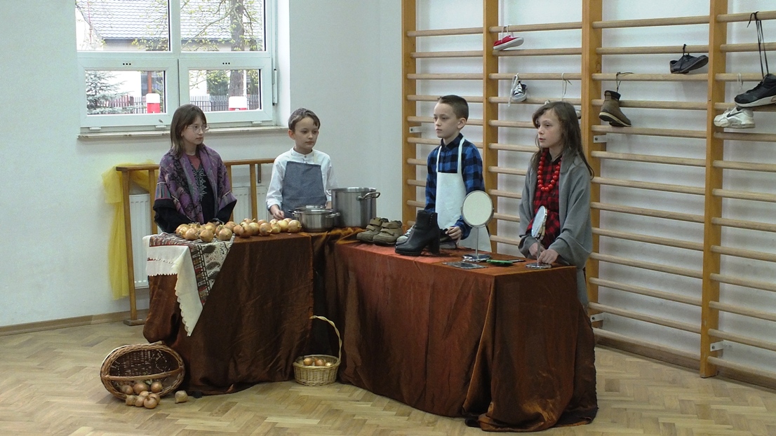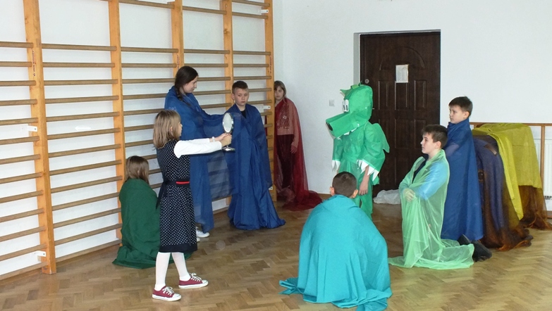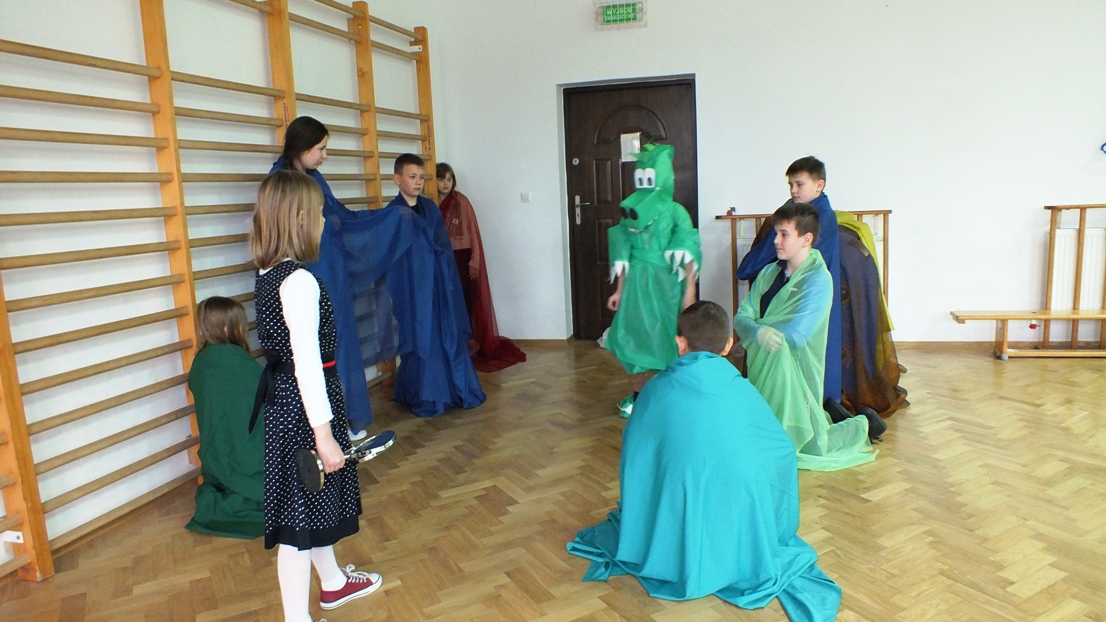 Dnia 19.04.2023 roku uczniowie klasy IV i V zaprezentowali społeczności szkolnej krótką inscenizację pt. "O warszawskim Bazyliszku". Samodzielnie przygotowali stroje i scenografię. Występ bardzo się podobał o czym świadczyły gromkie brawa.