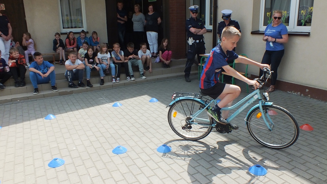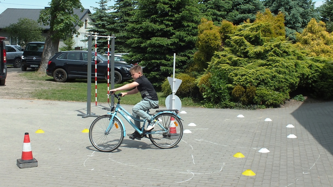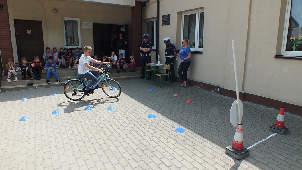 W dniu 06.06.2023r. uczniowie klasy IV zdawali praktyczny egzamin na kartę rowerową. Przed budynkiem szkoły powstało Miasteczko Ruchu Drogowego udostępnione przez Wojewódzki Ośrodek Ruchu Drogowego w Piotrkowie Tryb. Egzamin przeprowadzili policjanci z Wydziału Ruchu Drogowego Komendy Powiatowej Policji w Opocznie oraz egzaminator z WORD w Piotrkowie Tryb. Wszyscy uczniowie klasy IV wykazali się bardzo dobrą techniką jazdy na rowerze oraz znajomością przepisów ruchu drogowego. Z powodzeniem zdali egzamin praktyczny poprzedzony egzaminem teoretycznym. Wkrótce otrzymają upragnione karty rowerowe i staną się użytkownikami naszych dróg. Wszystkim gratulujemy i życzymy bezpiecznej jazdy rowerem!