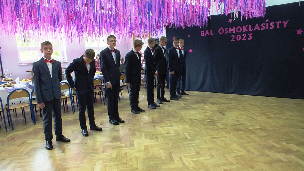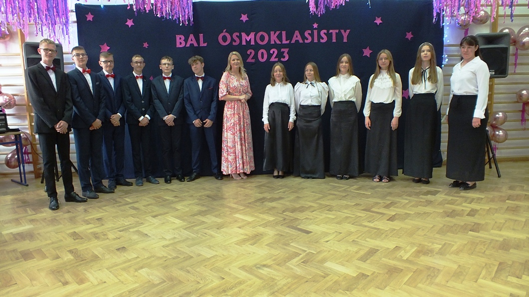 W dniu 7 czerwca odbył się w naszej szkole Bal Ósmoklasisty. Zaproszonych gości, uczniów oraz rodziców powitała Pani Dyrektor Sylwia Sarna – Jurek. Następnie uczniowie z klasy 7 i 8 zaprezentowali taniec narodowy polonez. Układ choreograficzny i wykonanie zostało nagrodzone gromkimi brawami i pochwalnymi słowami Pana Wójta Wojciecha Rudalskiego. Kolejnym punktem tego wspaniałego wydarzenia było przemówienie przedstawicieli samorządu klasowego. Ósmoklasiści podziękowali swoim rodzicom za zorganizowanie i przygotowanie balu. Słowa podziękowania skierowali również do nauczycieli oraz przybyłych gości. Po części artystycznej wszyscy zasiedli do wspólnego posiłku. Tańce i zabawy trwały do późnych godzin wieczornych. Magia i atmosfera tego balu na długo pozostanie w miłych wspomnieniach ósmoklasistów, rodziców i nauczycieli.