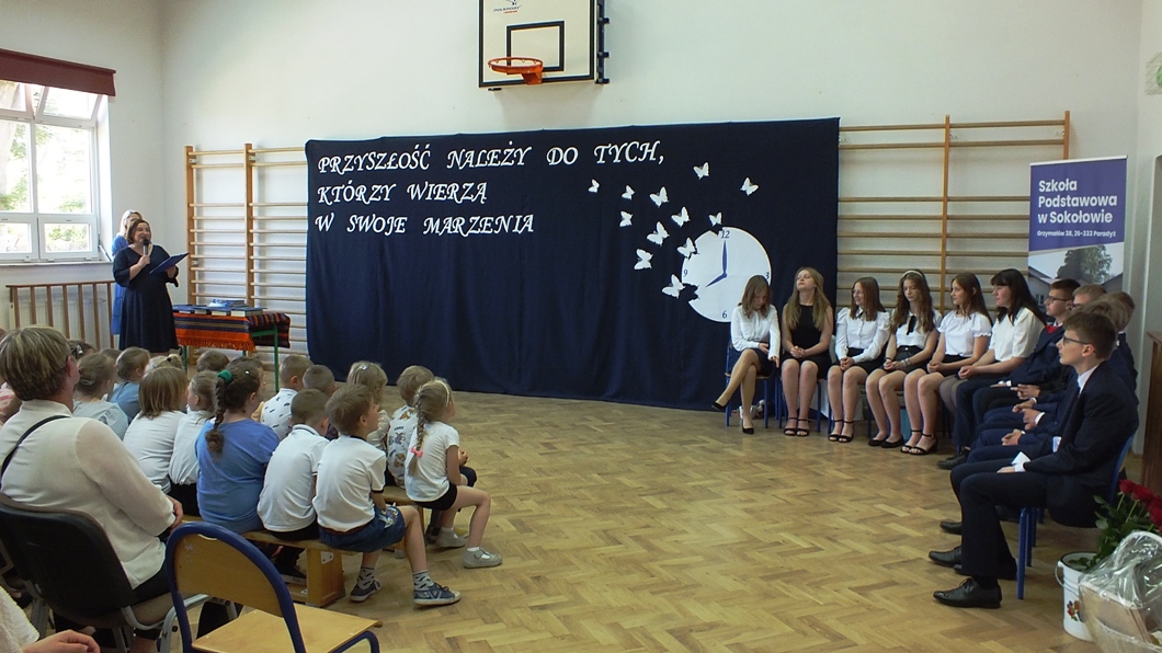 Dwunastu wspaniałych, młodych ludzi zostało mianowanych absolwentami Szkoły Podstawowej w Sokołowie. Sześć dziewcząt i sześciu chłopców wspólnie osiągnęło wysoką średnią ocen ze wszystkich przedmiotów. Wyniosła ona 4,14 przy frekwencji na poziomie 90,19 %.