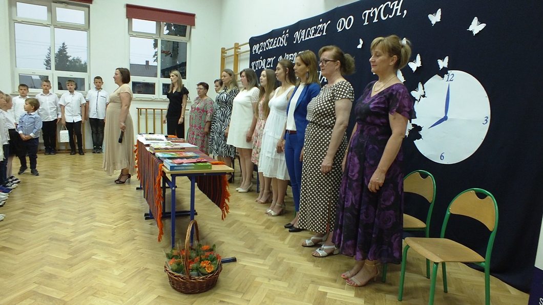 Szczególnym momentem podczas piątkowej uroczystości było pożegnanie odchodzącej na zasłużoną emeryturę po 36 latach pracy w szkołach na terenie gminy Paradyż Pani Anny Bochenek. Słowa podziękowania skierowała dyrektor szkoły, nauczyciele i dzieci z oddziału przedszkolnego, które wierszem i piosenką wyraziły swoją wdzięczność za trud nauki i wychowania. Były łzy wzruszenia i ciepłe słowa, które skierowała do wszystkich Pani Ania.