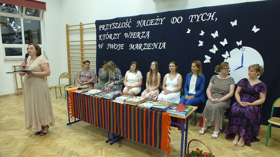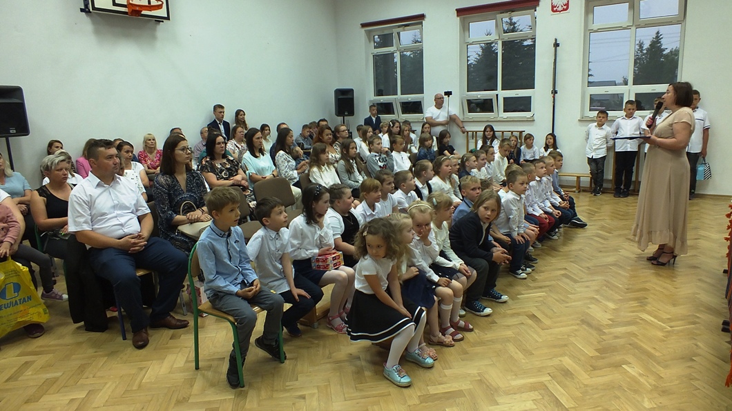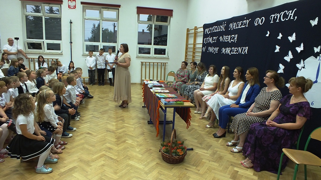 W miniony piątek 23 czerwca 2023 roku w sali gimnastycznej miała miejsce uroczystość zakończenia roku szkolnego. W trakcie podsumowania osiągnięć uczniów wychowawcy i dyrektor szkoły Pani Sylwia Sarna-Jurek wręczyli nagrody uczniom osiągającym najwyższe wyniki w nauce, a należą do nich: