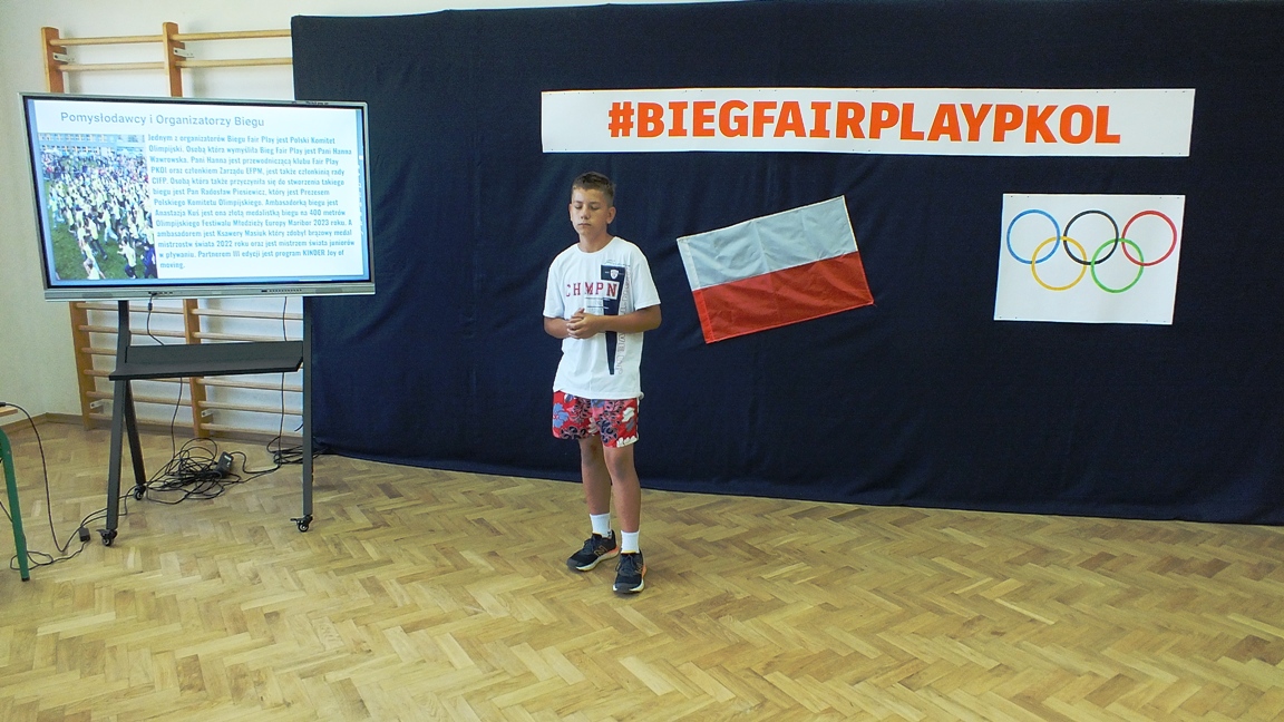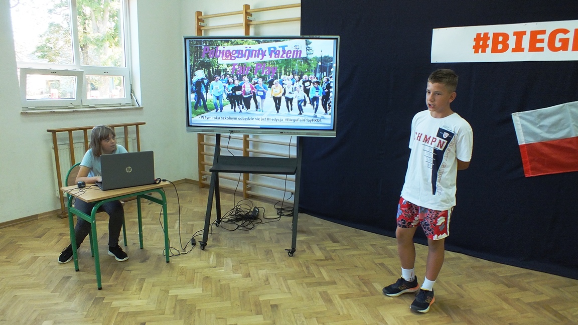 15 września wzięliśmy udział w III edycji akcji #BiegFairPlay organizowanej przez Polski Komitet Olimpijski. Celem wydarzenia była promocja norm etycznych zarówno w sporcie, jak i w życiu. O wartościach takich jak: szacunek, radość, przyjaźń opowiedzieli nam szkolni prelegenci – Julia Tracz i Jan Kędziora. Następnie po solidnej rozgrzewce odbył się wspólny bieg uczniów.