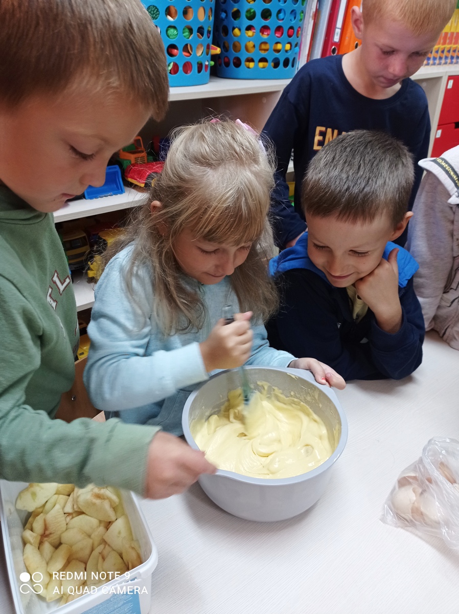 Jabłko, najbardziej znany polski owoc ma swoje święto 28 września. Obchody Dnia Jabłka w oddziale przedszkolnym rozpoczęliśmy od rozmów na temat jego wyglądu, koloru, wielkości, kształtu oraz smaku. Dzieci wszechstronnie poszerzały wiedzę o jabłku, a także zdobywały wiadomości na temat potraw i przetworów z jabłek. Kulminacyjnym punktem było wspólne przyrządzenie ciasta z jabłkami i jego degustacja. Celem zajęć i wspólnej zabawy było zachęcenie dzieci do spożywania jabłek jako źródła witamin, wyrabianie nawyku zdrowego odżywiania oraz utrwalenie wiadomości na temat jabłek.
