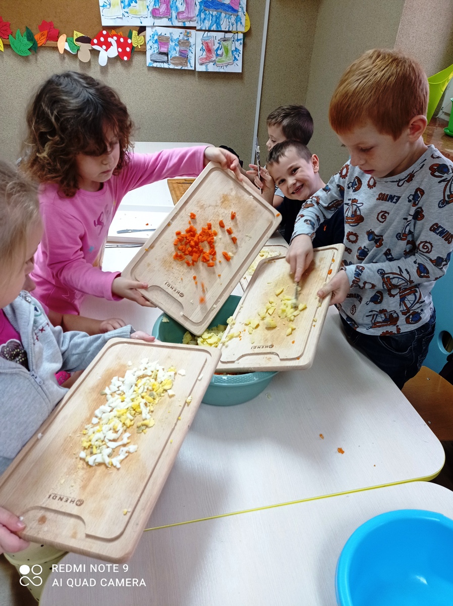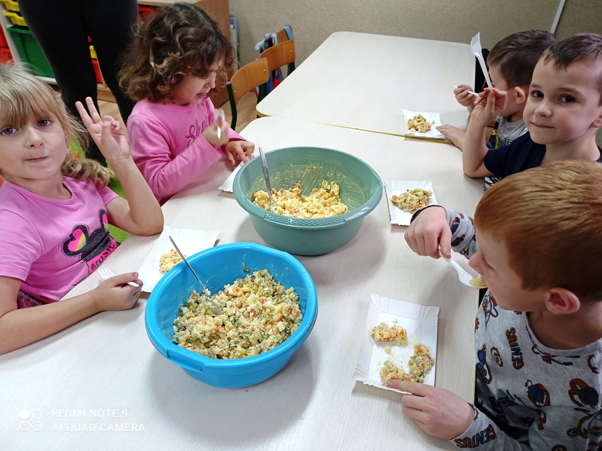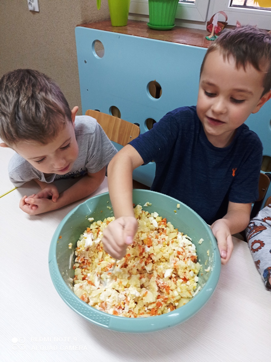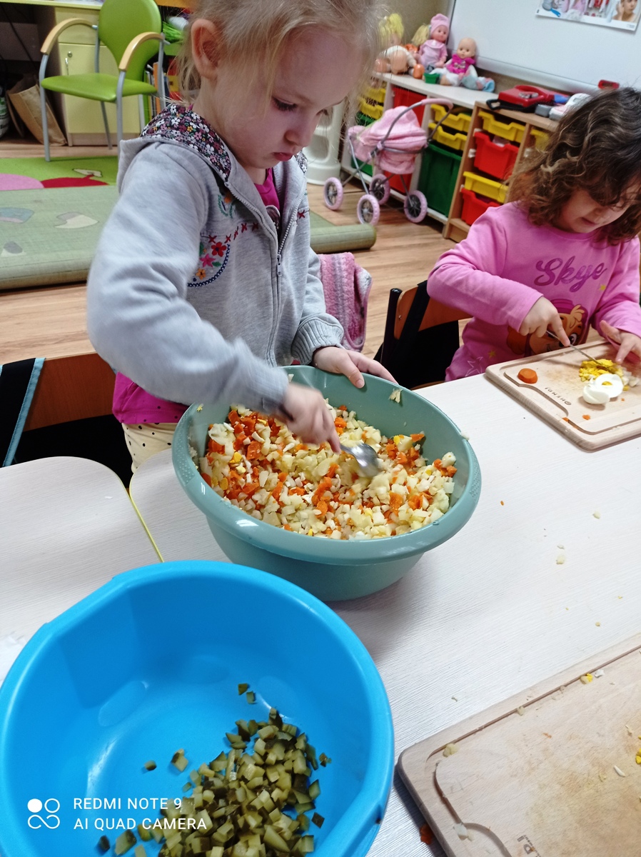 Ważnym elementem dbania o zdrowie jest właściwe odżywianie. Wraz z dziećmi rozmawialiśmy o tym, które produkty i potrawy są zdrowe i niezbędne, a jakich należy unikać, bądź ograniczać. Przy okazji zadaliśmy sobie pytanie: czy słodycze są zdrowe?. Zapamiętaliśmy także, że zdrowe odżywianie to również spożywanie warzyw i owoców. Wykonaliśmy zdrową sałatkę z naturalnych produktów.