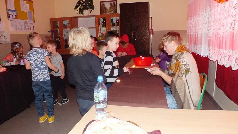 Podczas imprezy uczniowie uczestniczyli w wróżbach m.in lanie wosku, losownie kubka, karty, itp. ,które przygotowała klasa ósma. Jako pierwsi bawili sie uczniowie klas 0-3, a następnie klasy 4-8. Po poznaniu swoich przyszłych losów uczniowie świetnie bawili sie na dyskotece, podczas której organizowane były również gry i zabawy. Całej społeczności szkolnej dopisywały świetne humory.